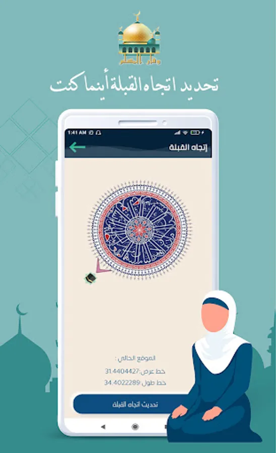 - Qibla direction section (determines the direction of the Qibla to ensure the correctness of the prayer).