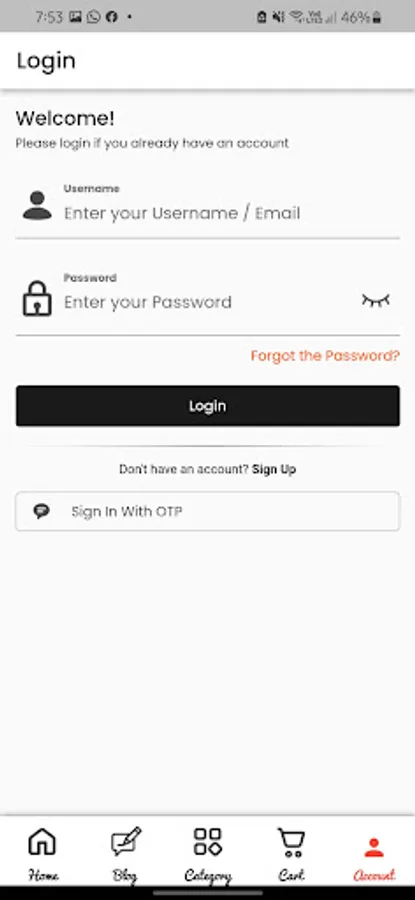 4- Log in with either the phone number or the email and the password that you registered in creating the account