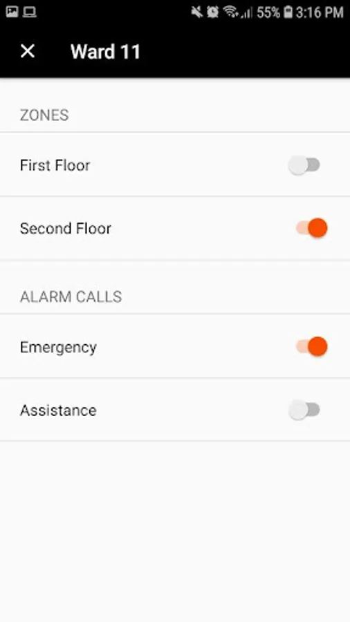 In the event of an alarm call, even if your android device is in sleep mode, it will wake and display a full-screen, colour-coded page informing you of the time, level and location of the call along with a vibrating and audible alert.