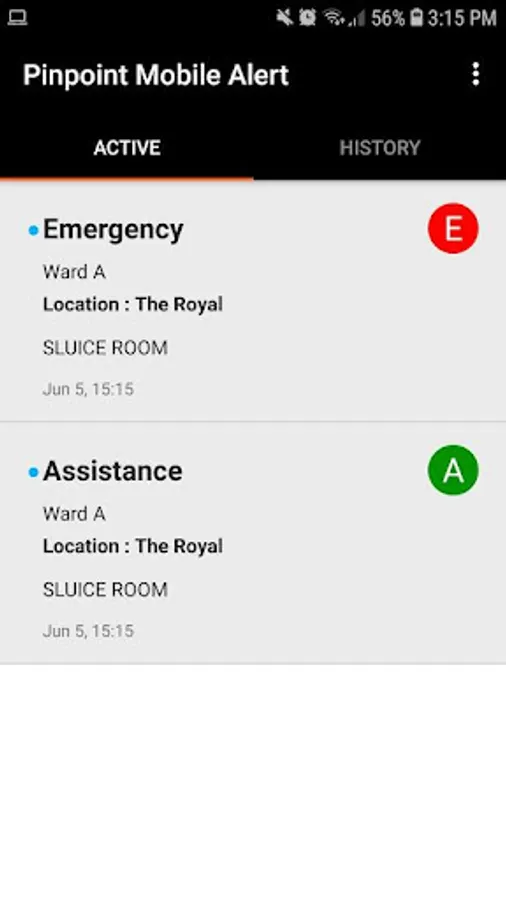 Active calls – All active calls for each user are stored on the “Active” screen until they are reset. From here each user can acknowledge seeing each call, which is logged.