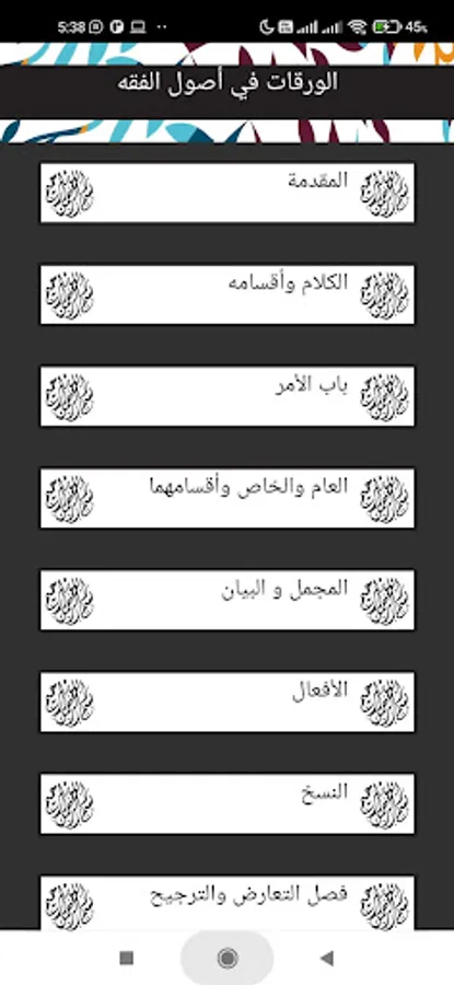 The name Al-Warraqat came from what its author initially said, “These are a few papers that contain knowledge of chapters from the principles of jurisprudence.” Al-Juwayni spoke in the papers about fifteen chapters of the principles of jurisprudence, which are: