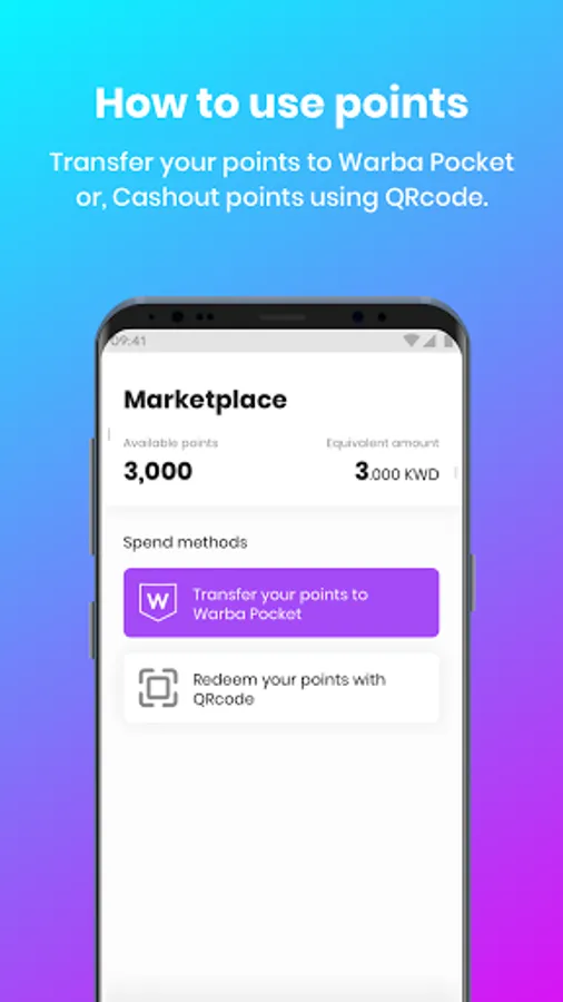 • Cash out your points in the market place, or transfer them to Warba Bank ‘Pocket’ Loyalty program and enjoy all its benefits.