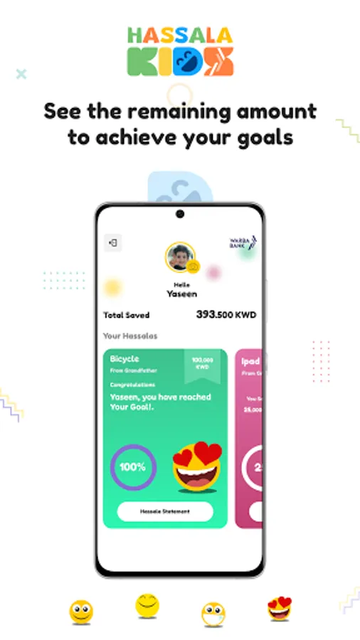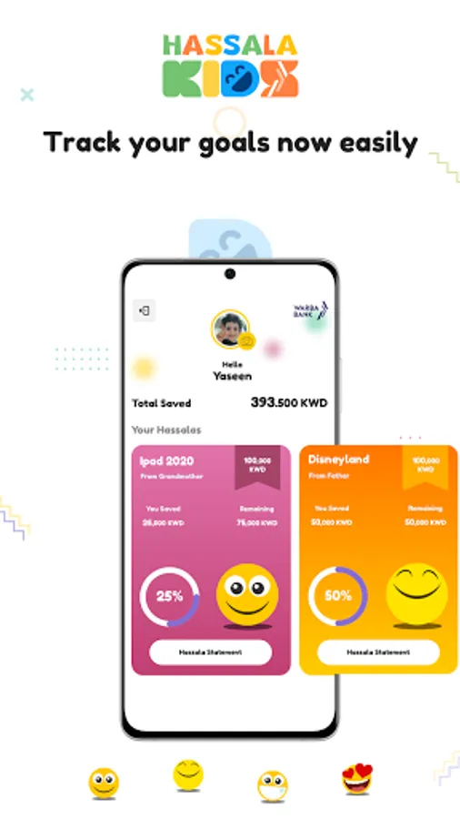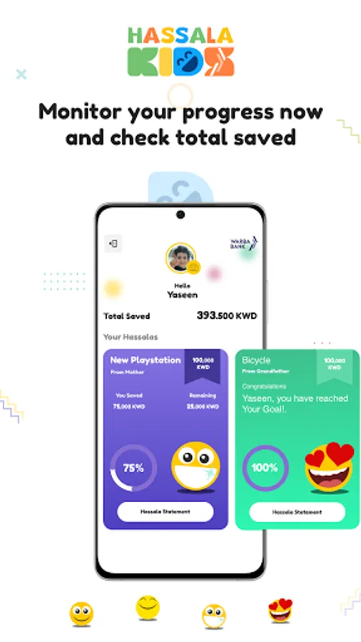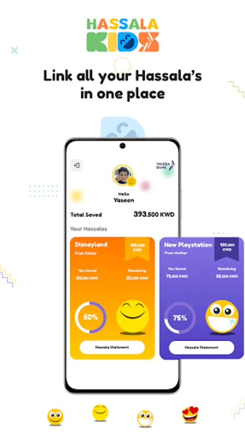 First of its kind in Kuwait that contributes to educating the child about the value of saving and encourages the child to save better through the digital “Hassala”, and he/she will follow up all savings transactions in an entertaining and digital way.