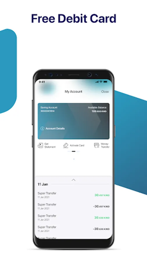 Request your free debit card through the app and have it delivered to you. Your card can be used at shops, ATMs and online purchases.