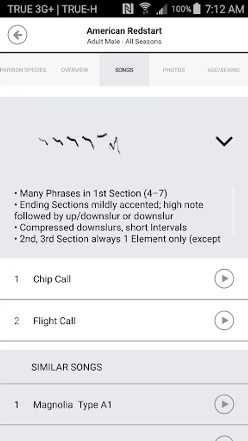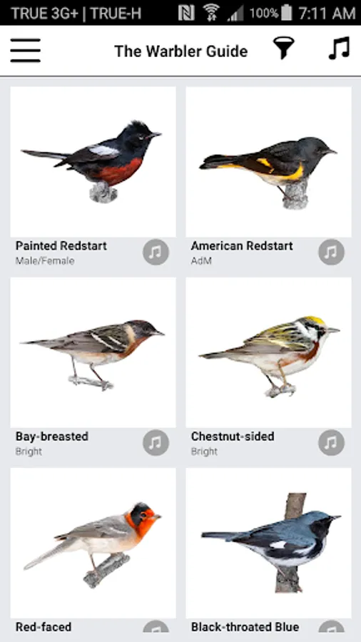 Breakthrough features from The Warbler Guide book that are included in the app: