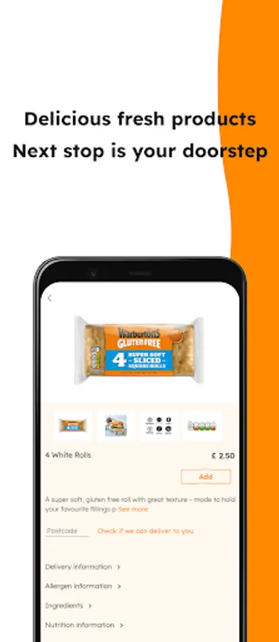 With our app, you can now purchase all of your Warburtons Gluten Free products in one place, saving you both the time and effort of having to go out for your weekly shop.