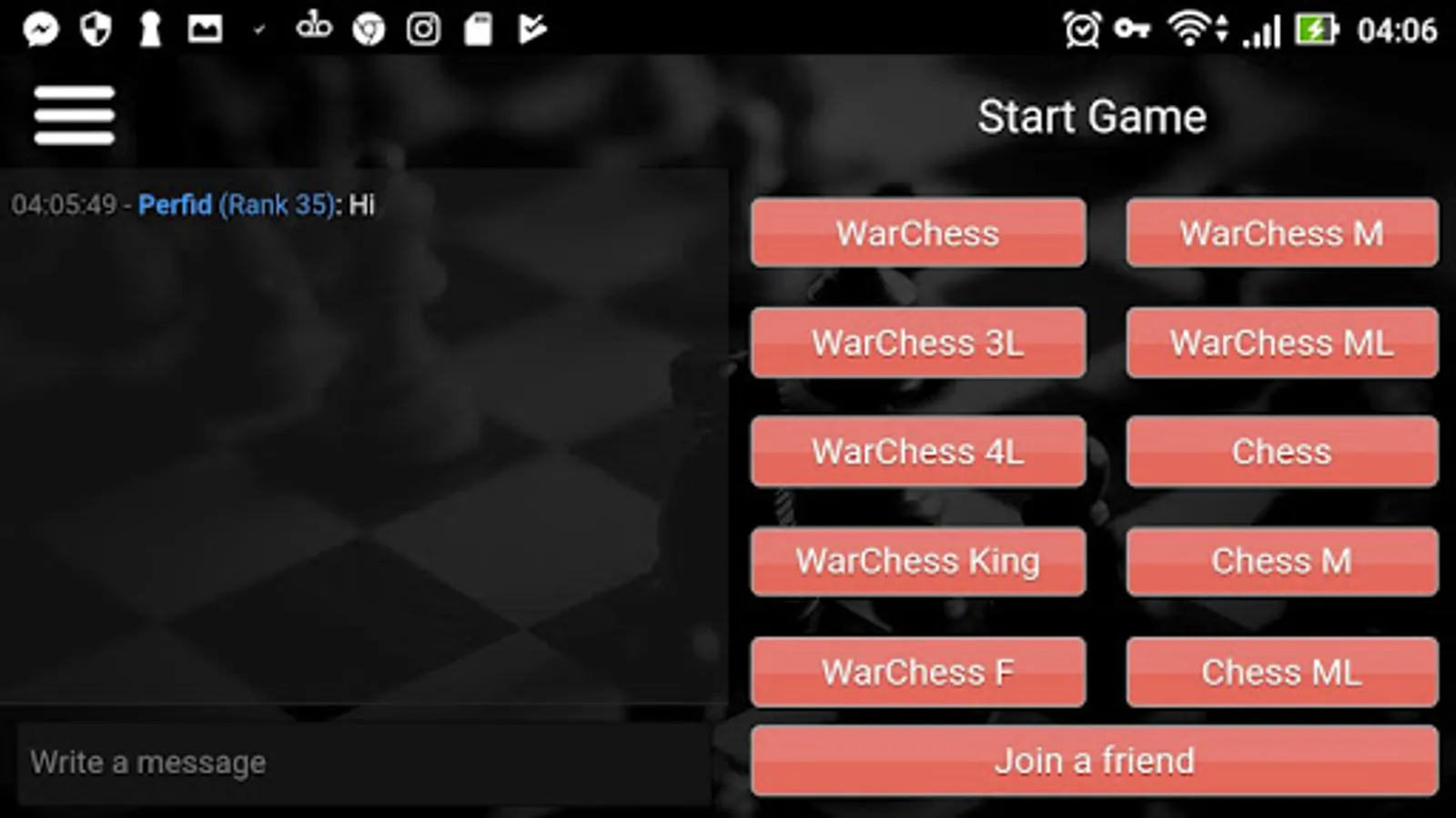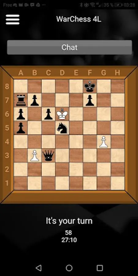 WarChess is a modified Chess Game Board with fog of war and custom multi-line piece placements before the game. The goal is the same as for chess but with endless strategies. The game in its free version has three game modes. On two lines. On four lines.