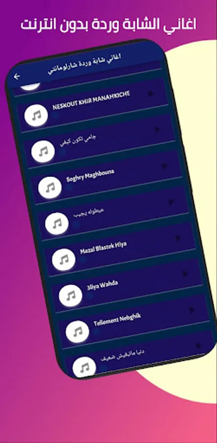 *Navigate between the application of Shabab Warda 2023 songs without the Internet.
