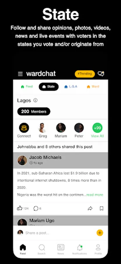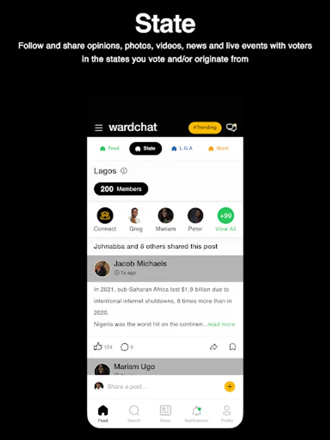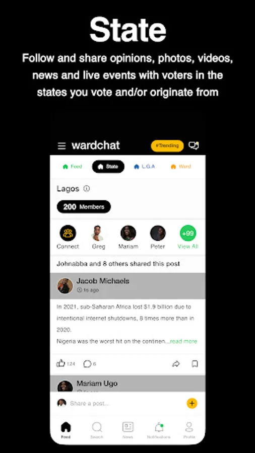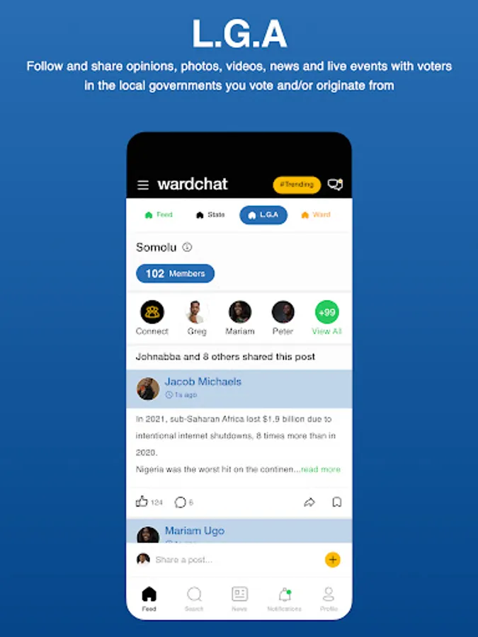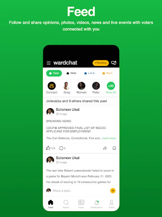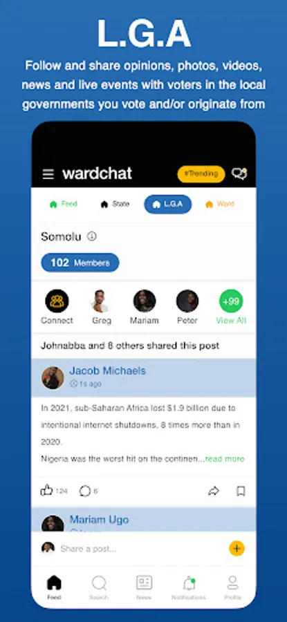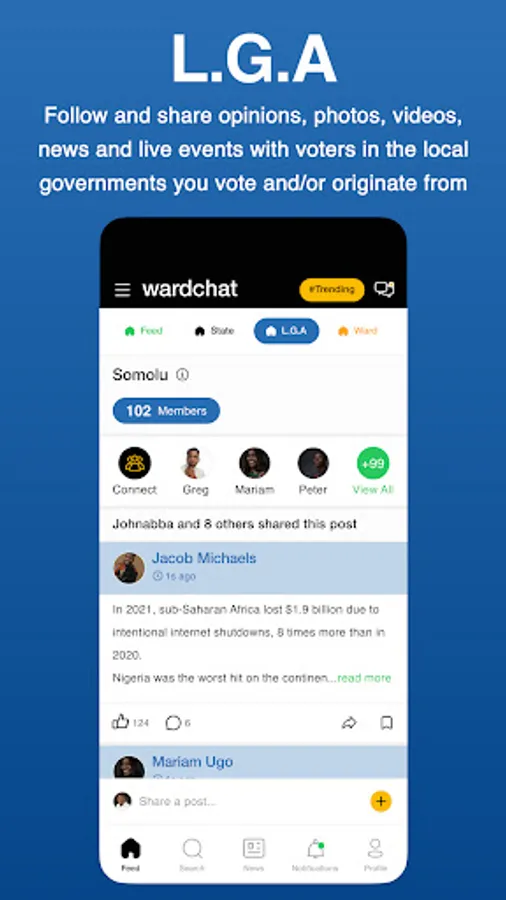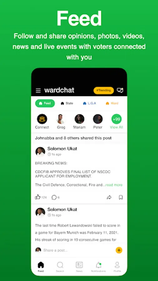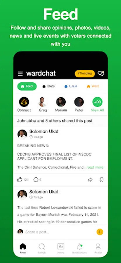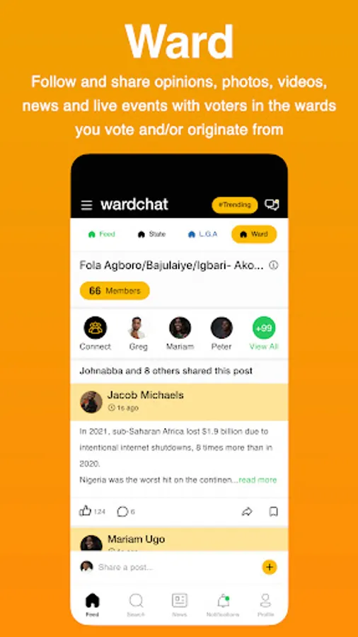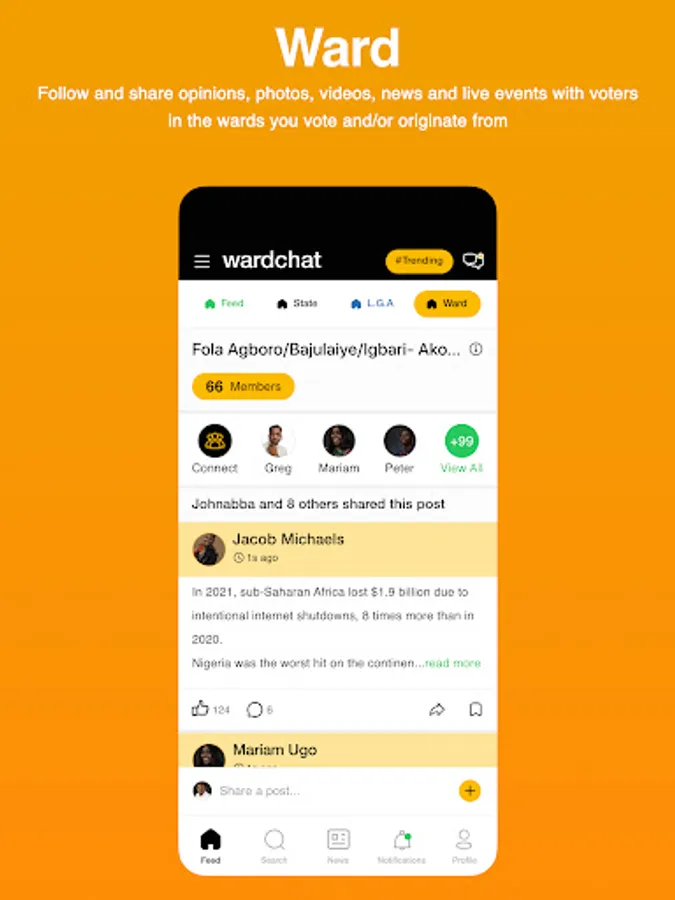 6. Ward Feeds - Follow and share opinions, photos, videos, news and live