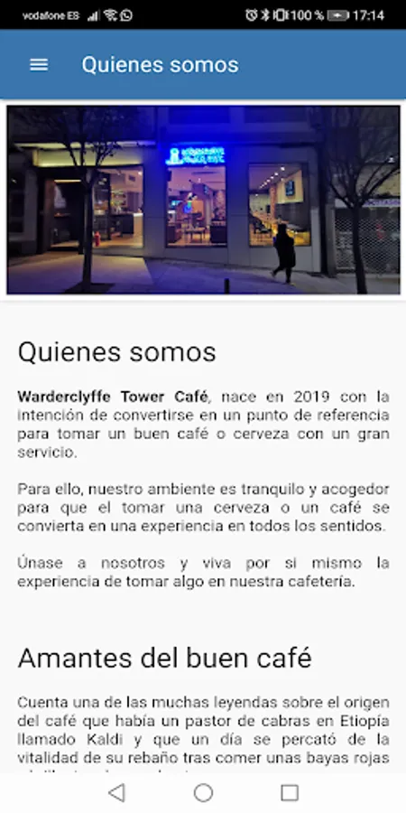In this application you can consult the menu of products of the cafeteria, detailed information about it and access the customer loyalty program where you can get numerous discounts and exclusive offers