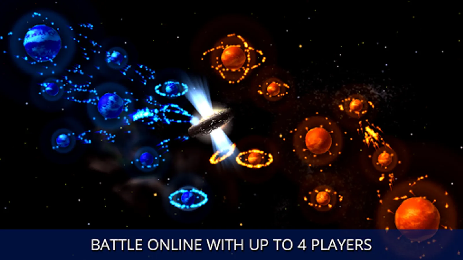 - Online multiplayer with Google Play Games to wage planetary war against each other.