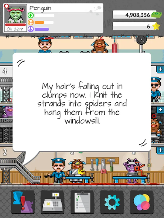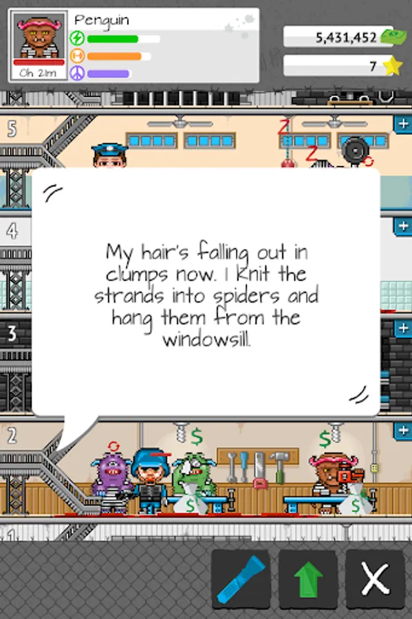 Welcome to your Tiny Prison, where you are the Warden, and you can run your prison however you see fit! Send prisoners to work in the shop. Build new floors for your prison such as an infirmary or a gym. Hire guards to break up fights and prevent murders in your prison. Search cells for contraband, and much, much more!