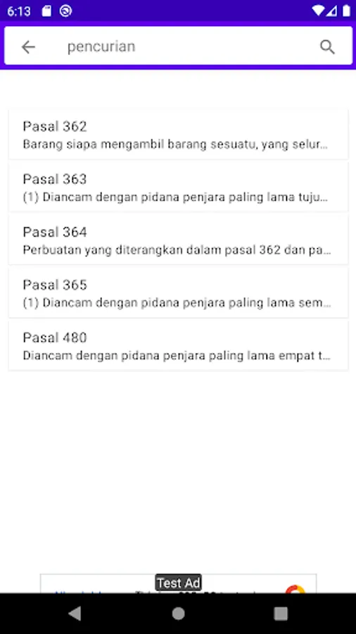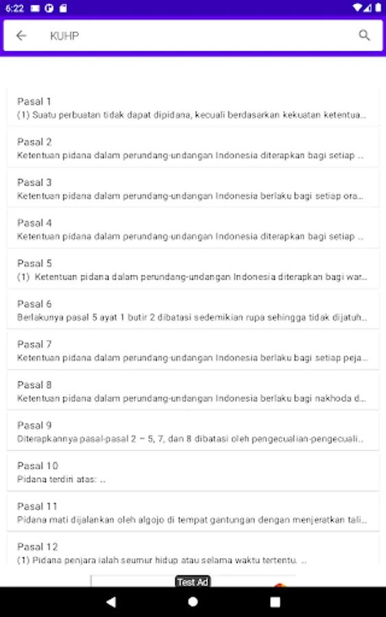 Fitur aplikasi KUH Pidana: