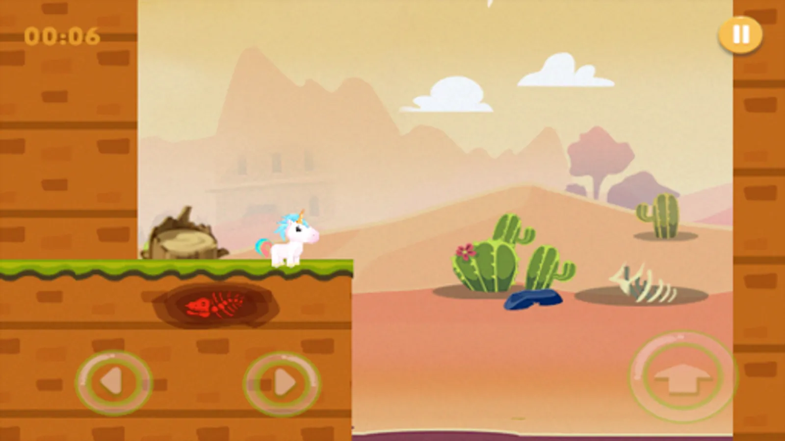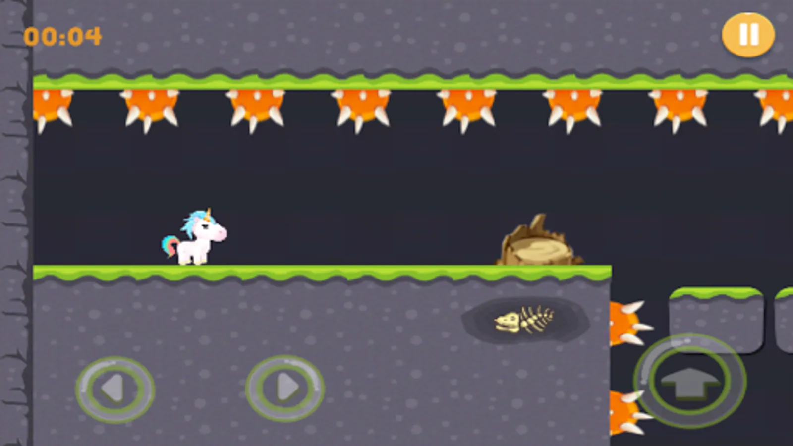 Our unicorn friend Rainbow needs your help. She is lost in a world that is obviously not unicorn friendly. No more rainbows and cotton candy! Rainbow has to avoid high falls, spinning spikes, and various other traps built by the "bad eggs", until she gets to the final fight with BOSS and get back to her peaceful world! Good luck on getting her through her journey through multiple challenging levels.
