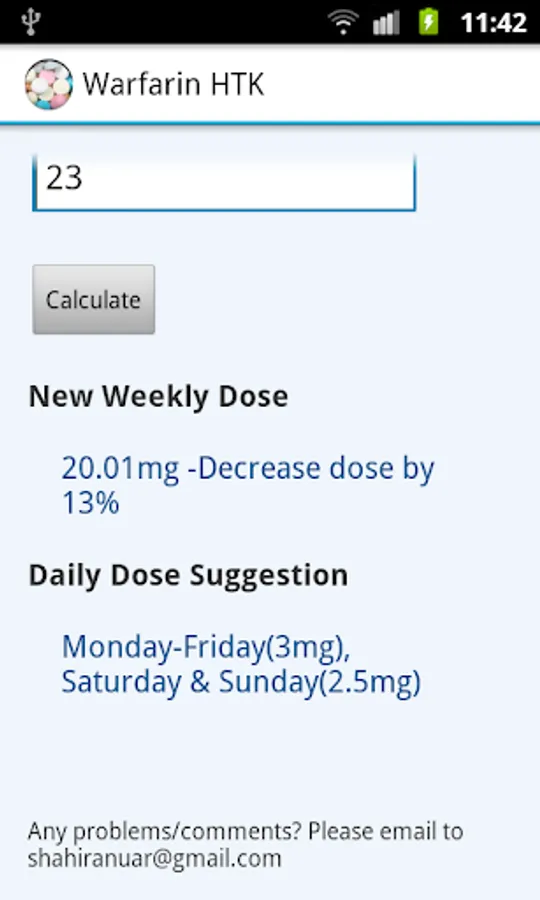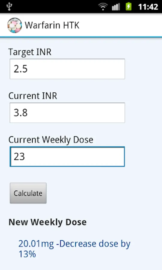 WARNING : App is intended for use solely by physicians and pharmacists that has been trained in Warfarin dosage adjustment. Use this app at your own risk.