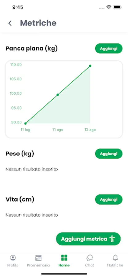 • Track your clients' metrics (maximums, weight, etc.) so you can monitor progress