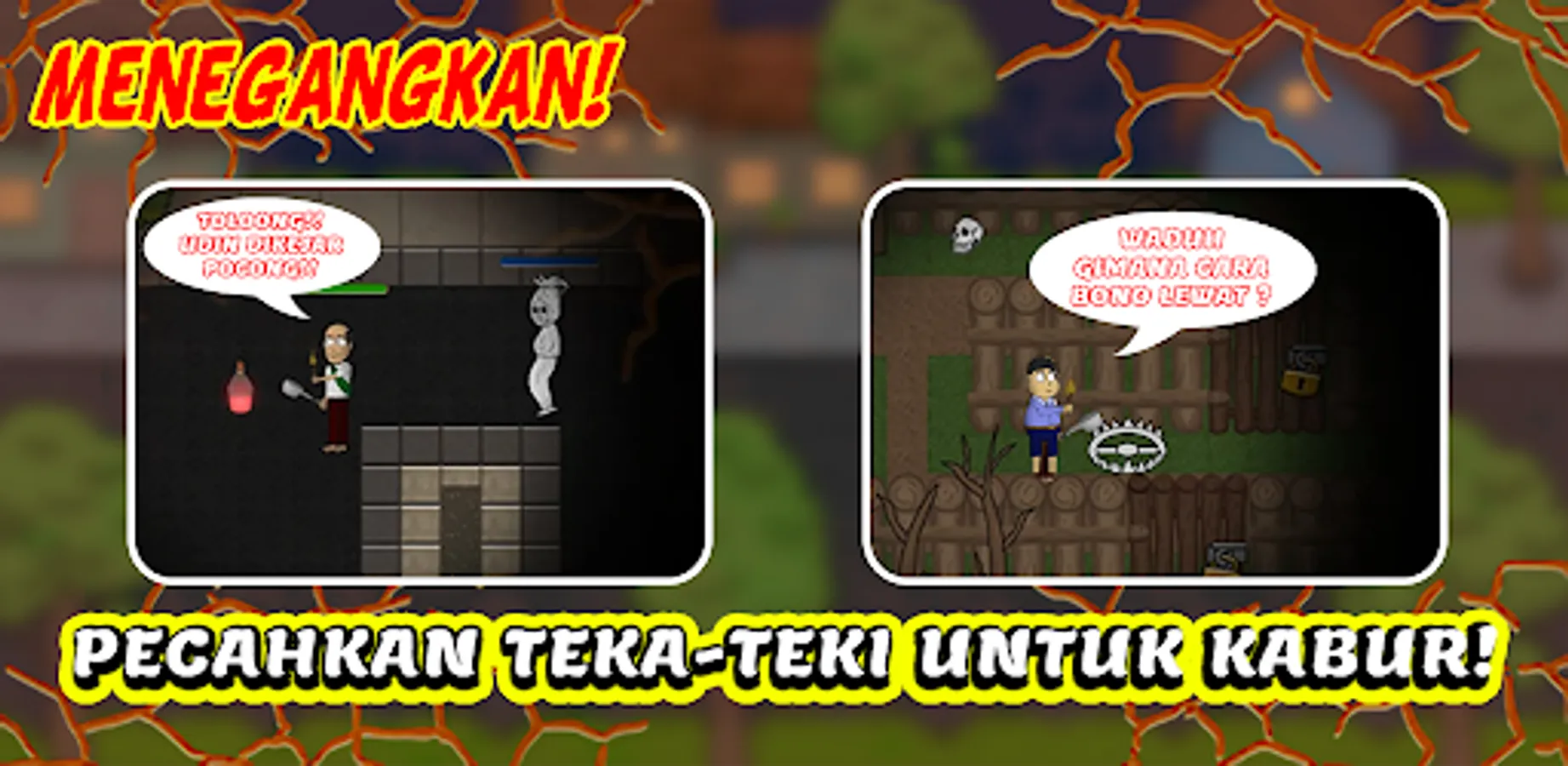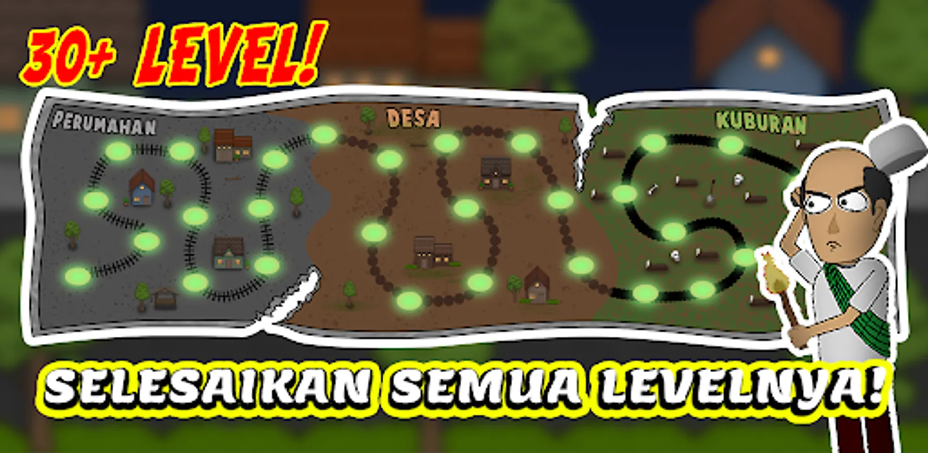 Help Udin, Bono, Tito, Pak No, Pak RT, and Wan Sutri to escape from ghostly obstacles in a maze of houses, villages and cemeteries! There are ghosts of Pocong, Kunti, Vampire, Tuyul and Genderuwo who will block, guard and close any existing exit.