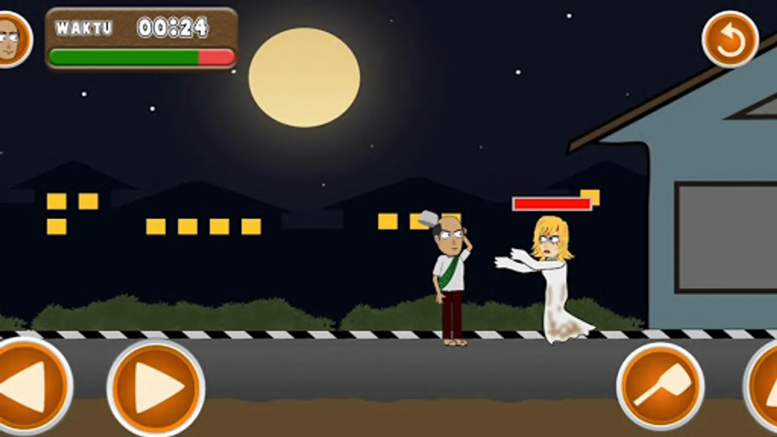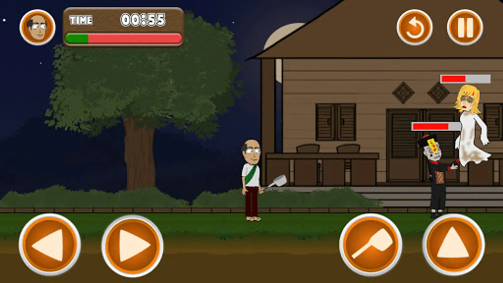 Hit and fight every ghost that appears with a pot and dodge all the obstacles that get in your way.