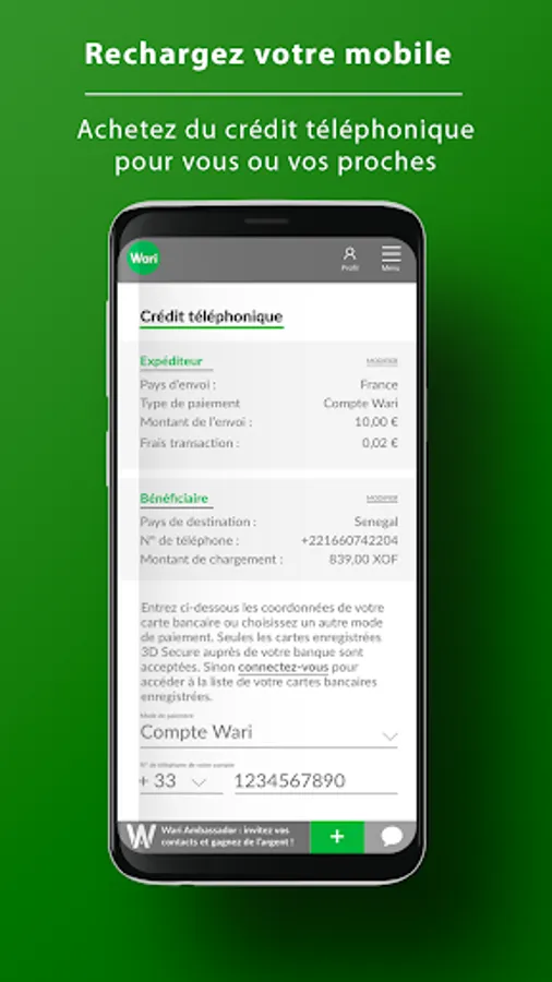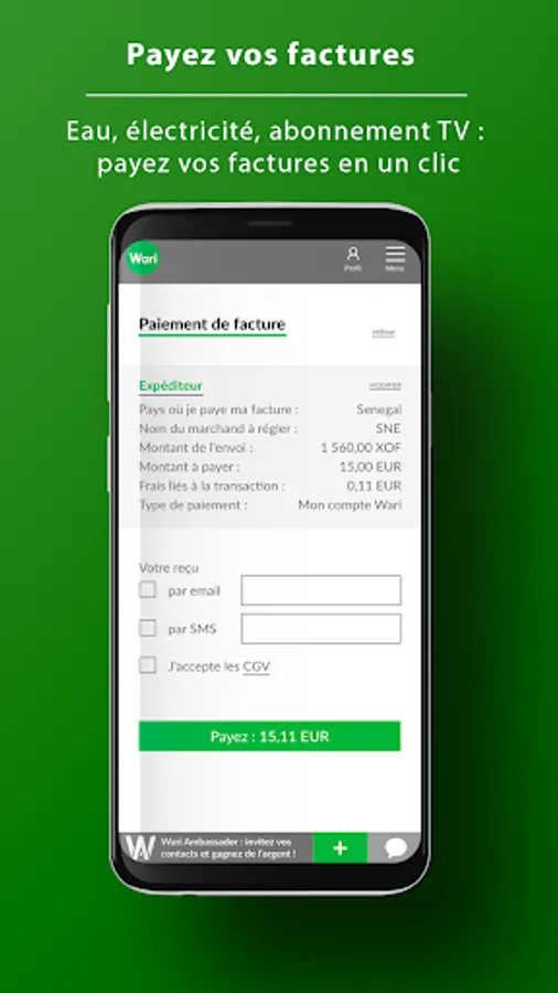 With myWari, Wari puts at your disposal the largest span of payments methods, for paying and getting paid :