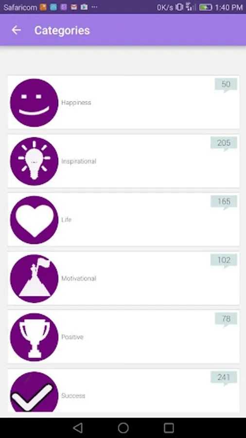 * Choose from different categories of quotes and enjoy
