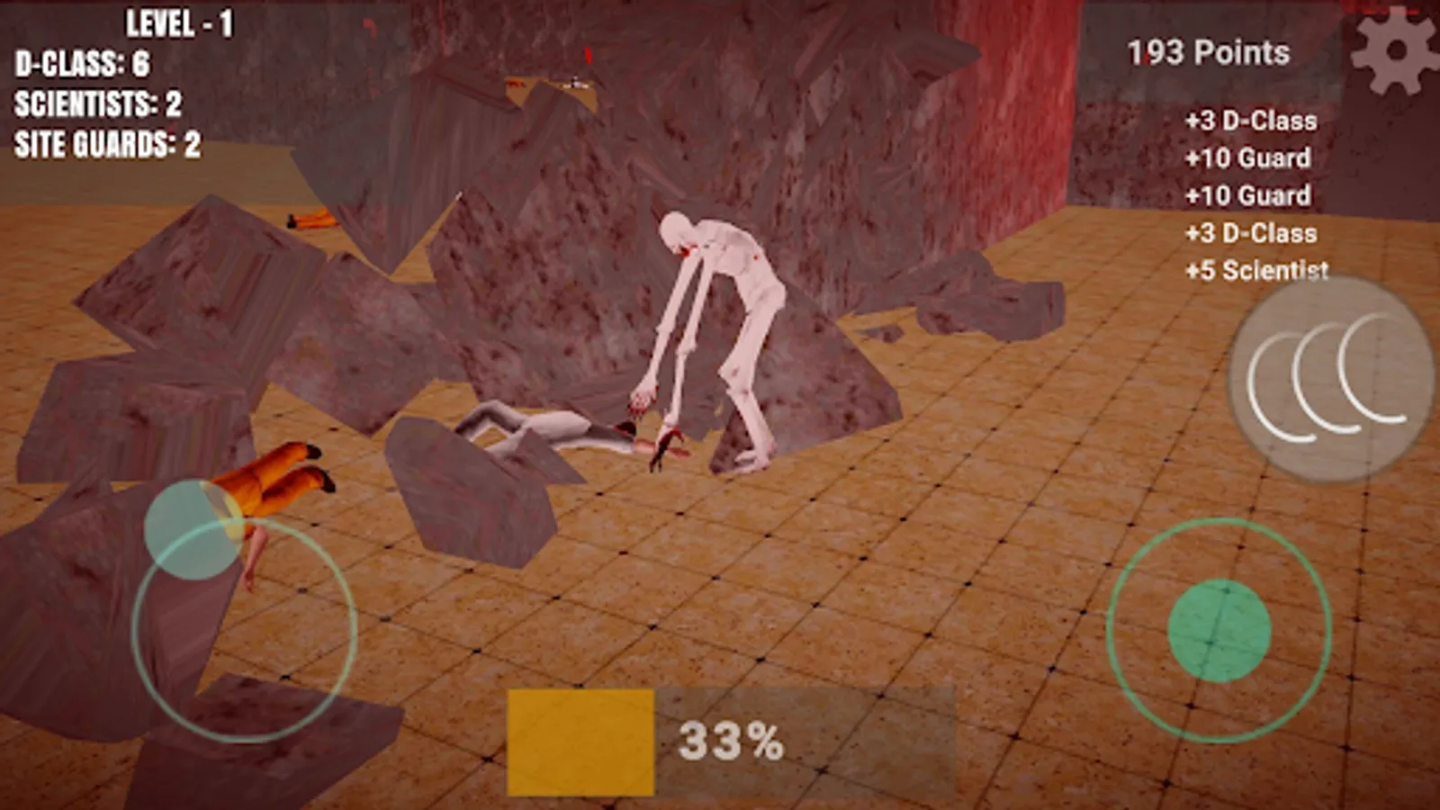 Evolve with points earned from defeating the SCP staff to improve your speed, HP, and regeneration.