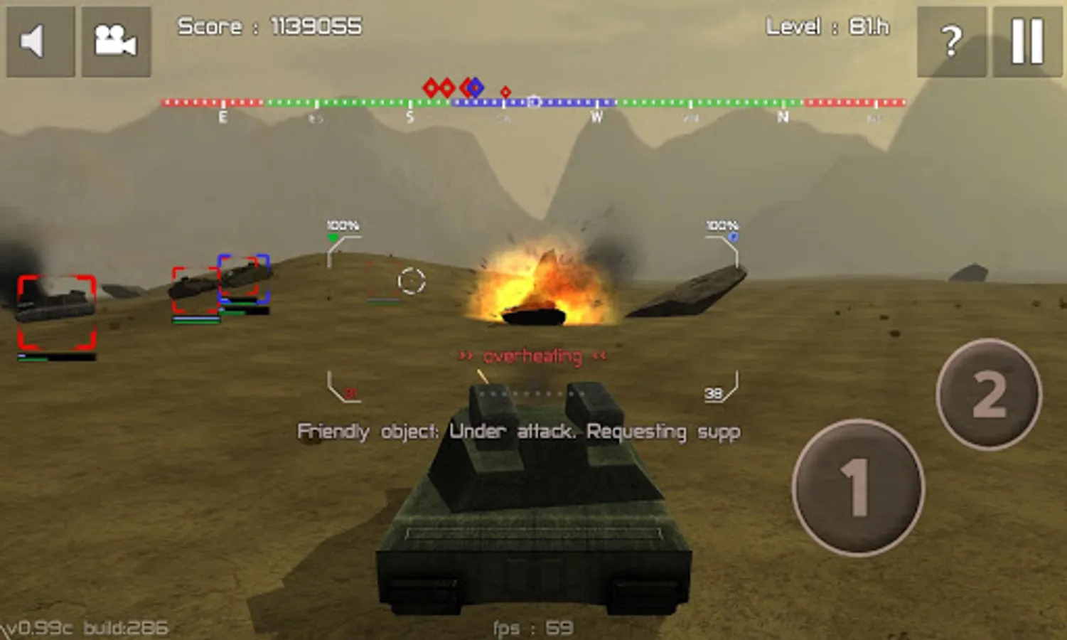 The Lite version of the game contains 12 levels and 3 types of tanks.