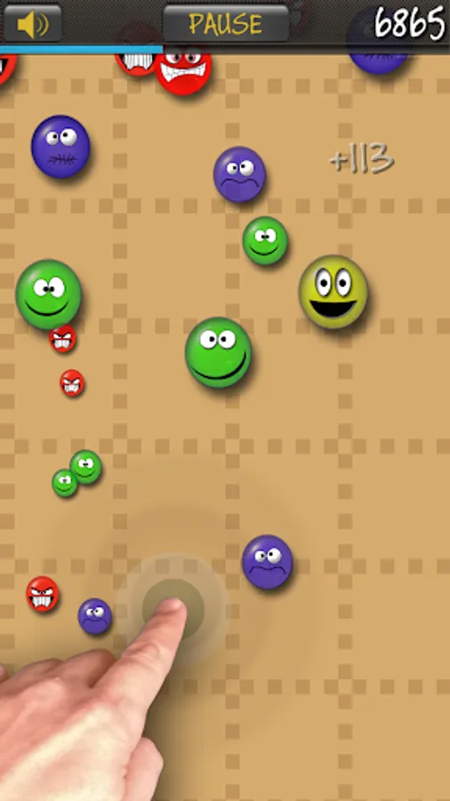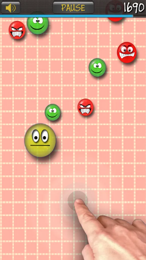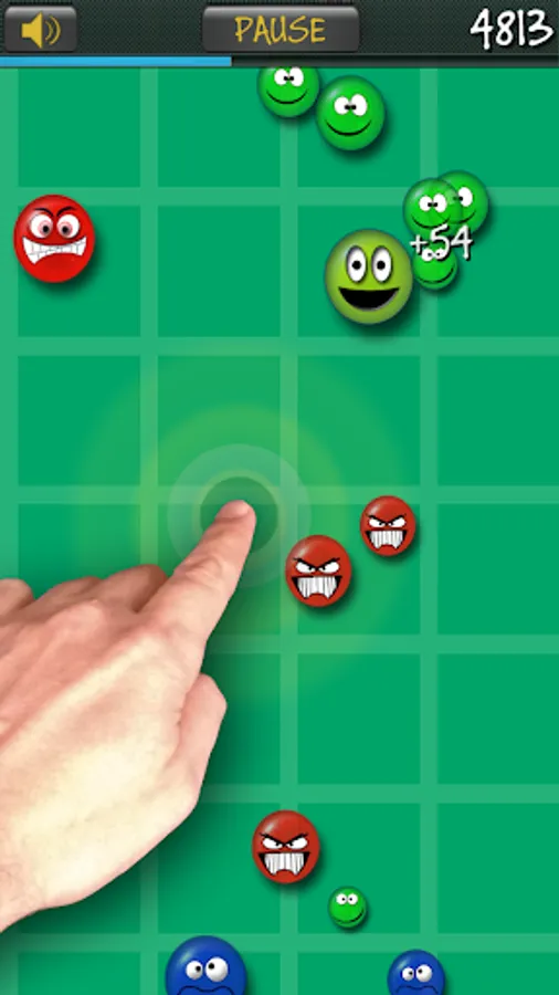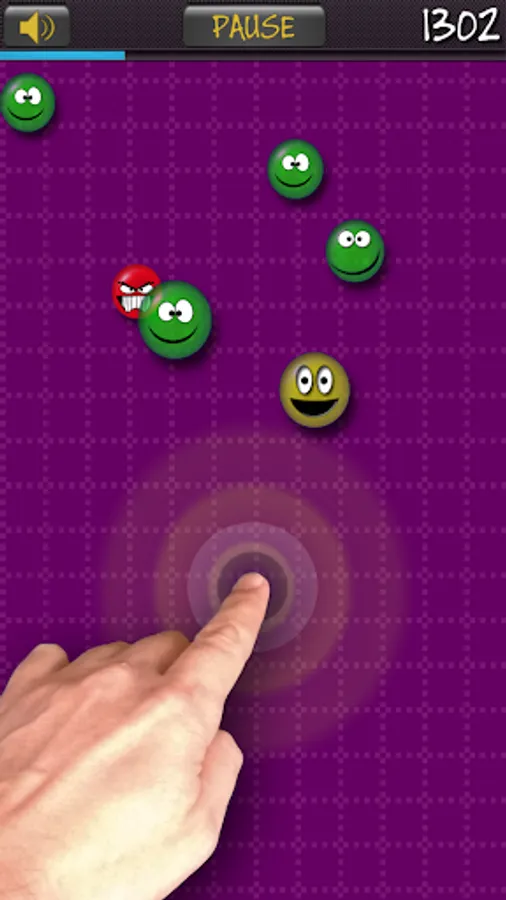 Ignore the wacky ones (blue balls). Don't make contact with the angry ones (red balls) because they kill you.