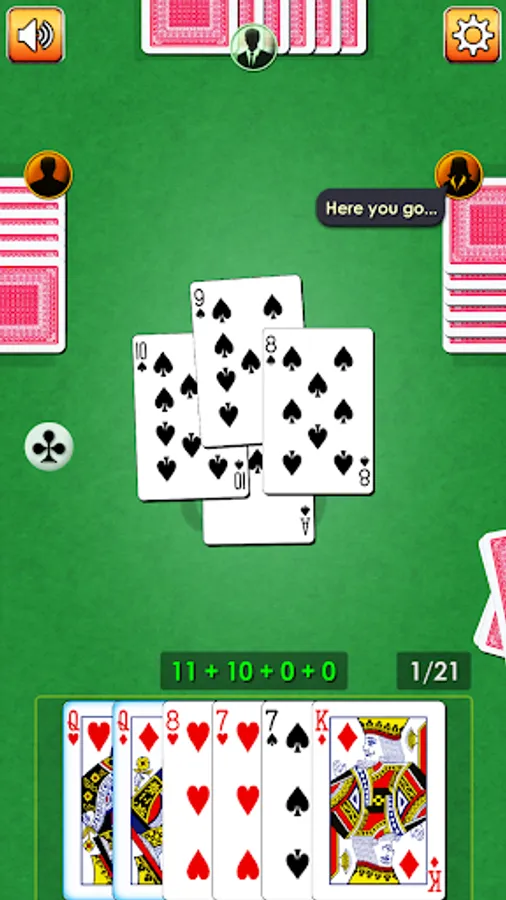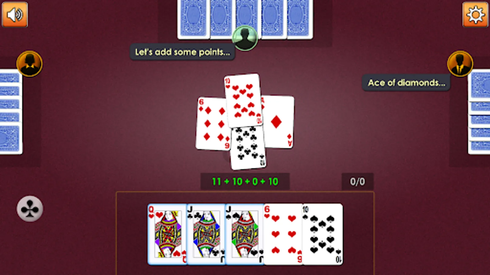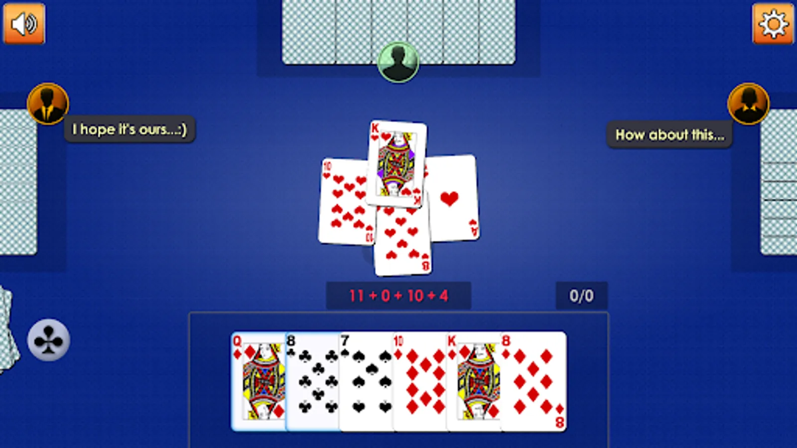 The game is for 4 players, split into two teams of two. You will play with an AI partner against two AI opponents. Teammates sit opposite each other at the table.