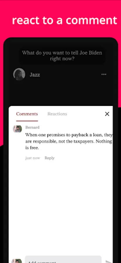 Share your opinion on a topic to express yourself. We all need to be heard so voice yourselves on pressing topics, breaking news and what's trending. Comment today on a topic and watch the reactions and responses flow in.