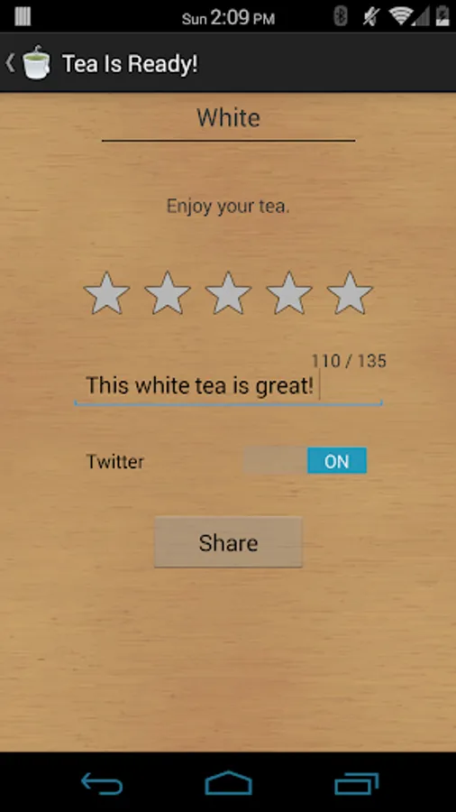 So go ahead, put in the information about your cabinet and set a timer for a cup of tea that you'd like to enjoy. Afterwards be sure to share your thoughts on Twitter! Your thoughts will show up on the #tea area once tweeted.