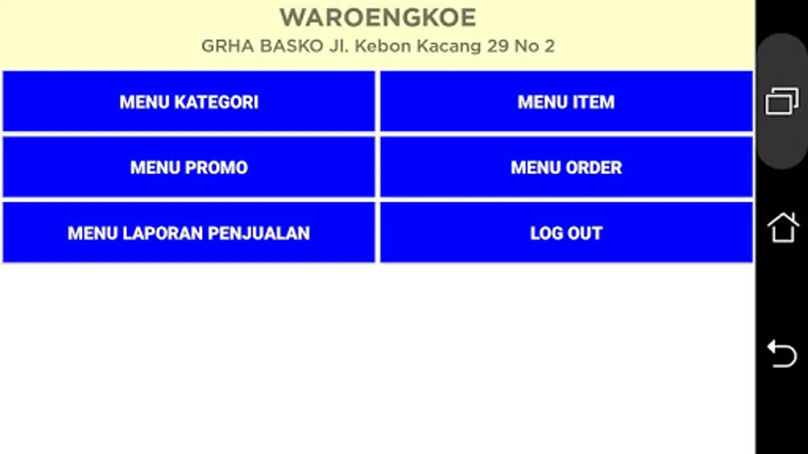 WaroengKoe Pos Android menu