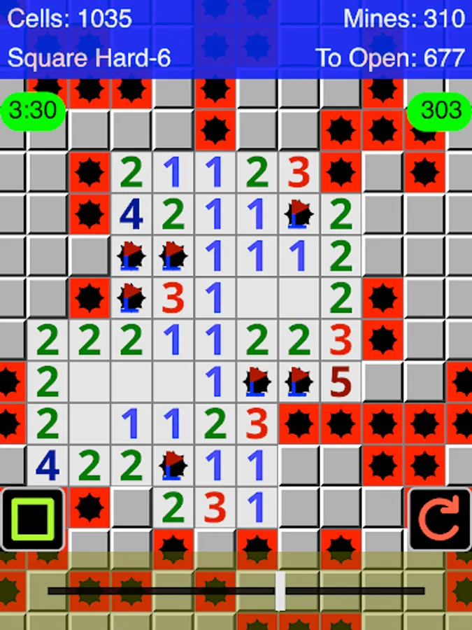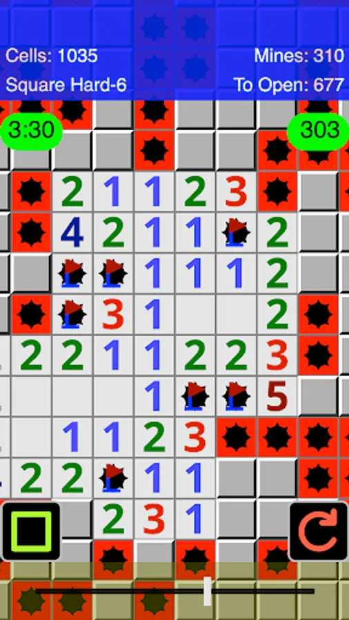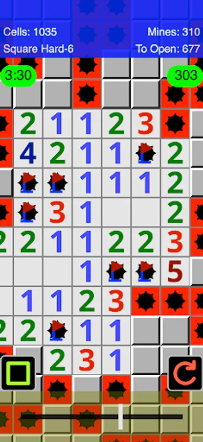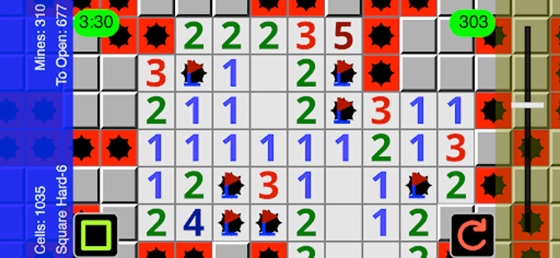 If a digit is revealed, it indicates the number of mines hidden in the adjacent cells. You can't open flagged cells. When you long-press a digit, the surrounding cells will open if you have correctly flagged.