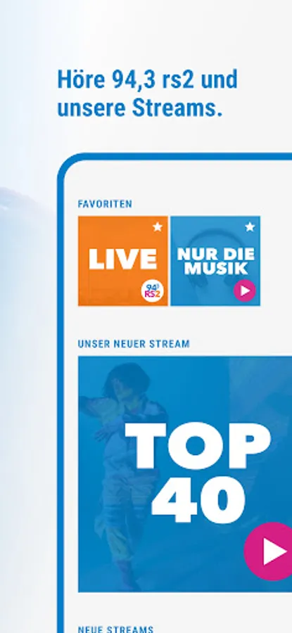 Discover the new 94.3 rs2 app - get "Berlin's best music" directly on your smartphone! Thanks to the new, clear design, navigating to your favorite music is now even easier. Choose from numerous streams or immerse yourself in the world of rs2 podcasts.