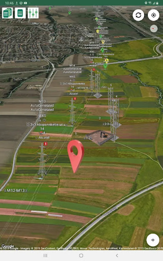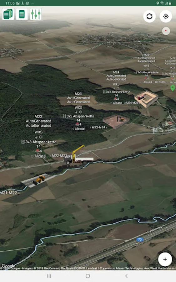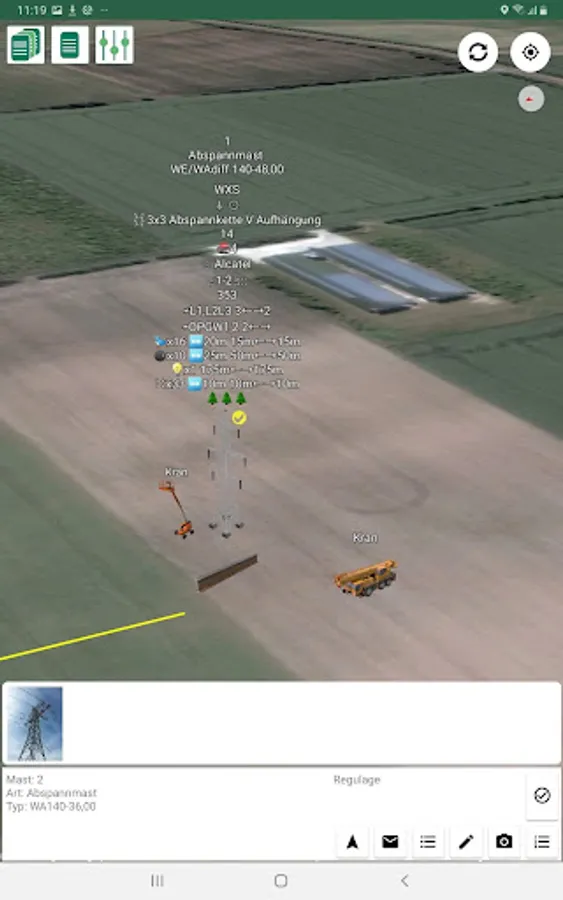 - Import of ground layout in KML/KMZ format with selectable layers and tower positions