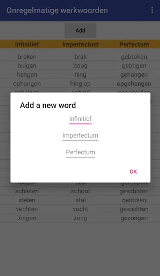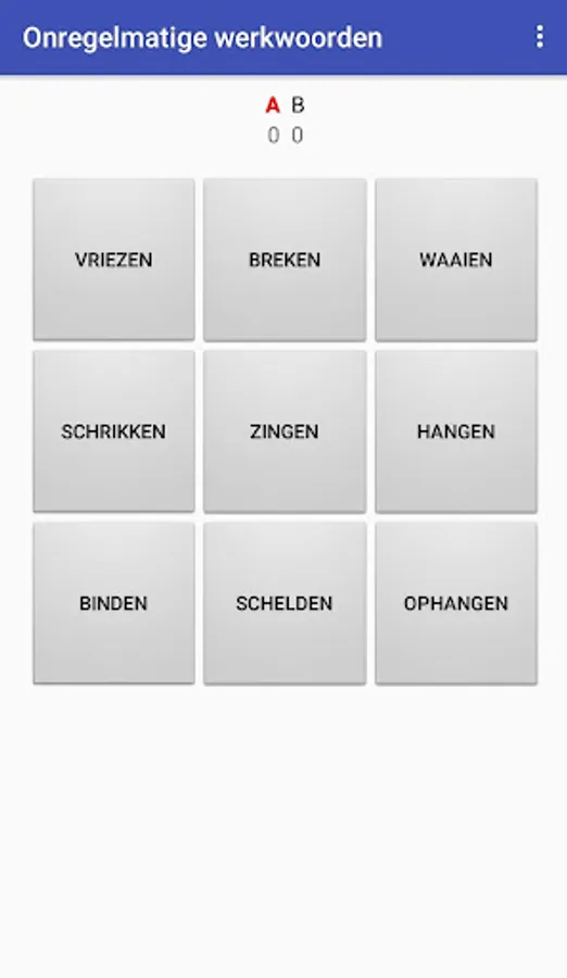 This app helps practice irregular verbs in dutch based on the game tic-tac-toe.