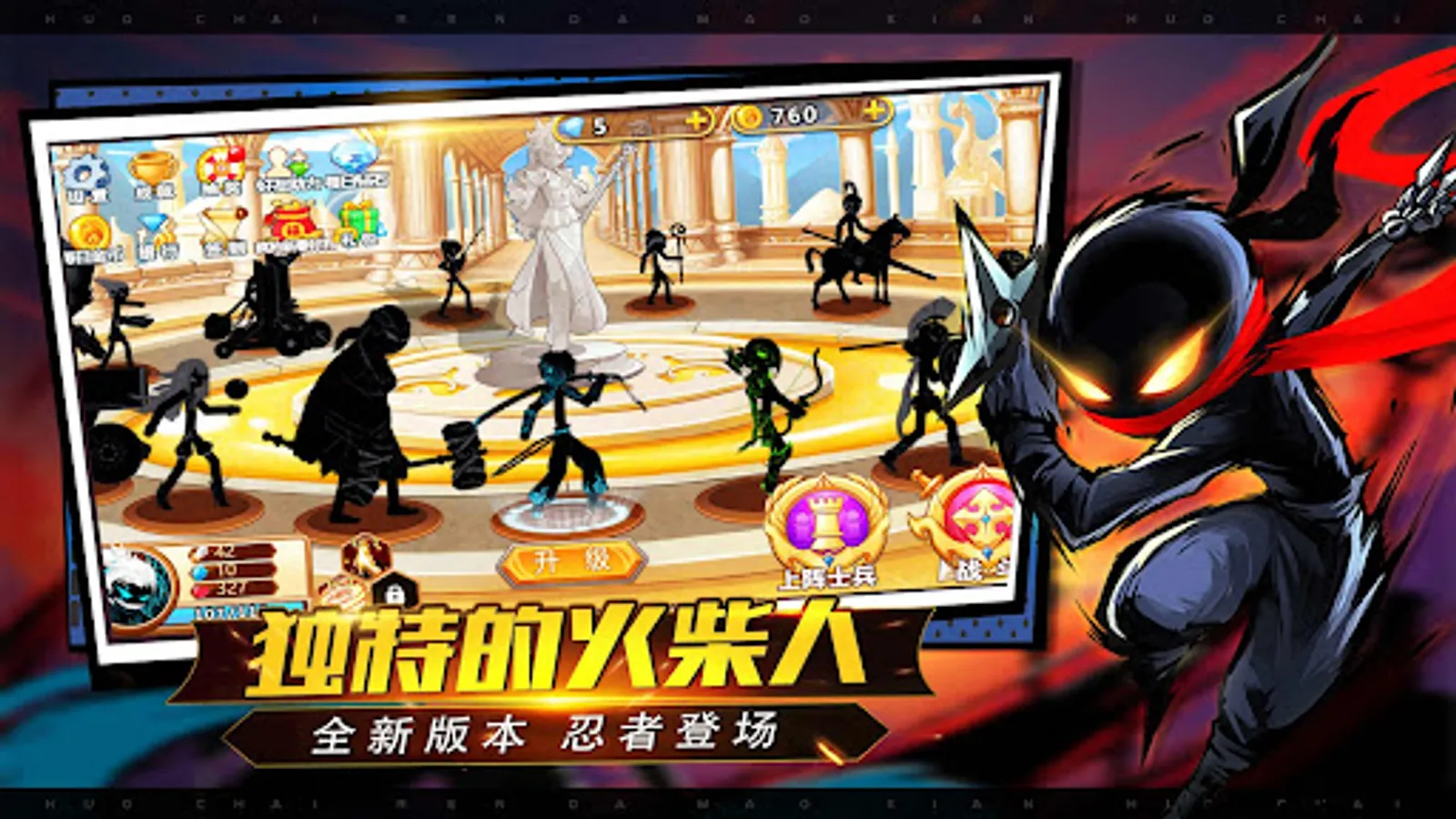 This is a stickman game. The stickman has multiple forces, gather their own forces, fight against the enemy, and defeat the enemy to win.