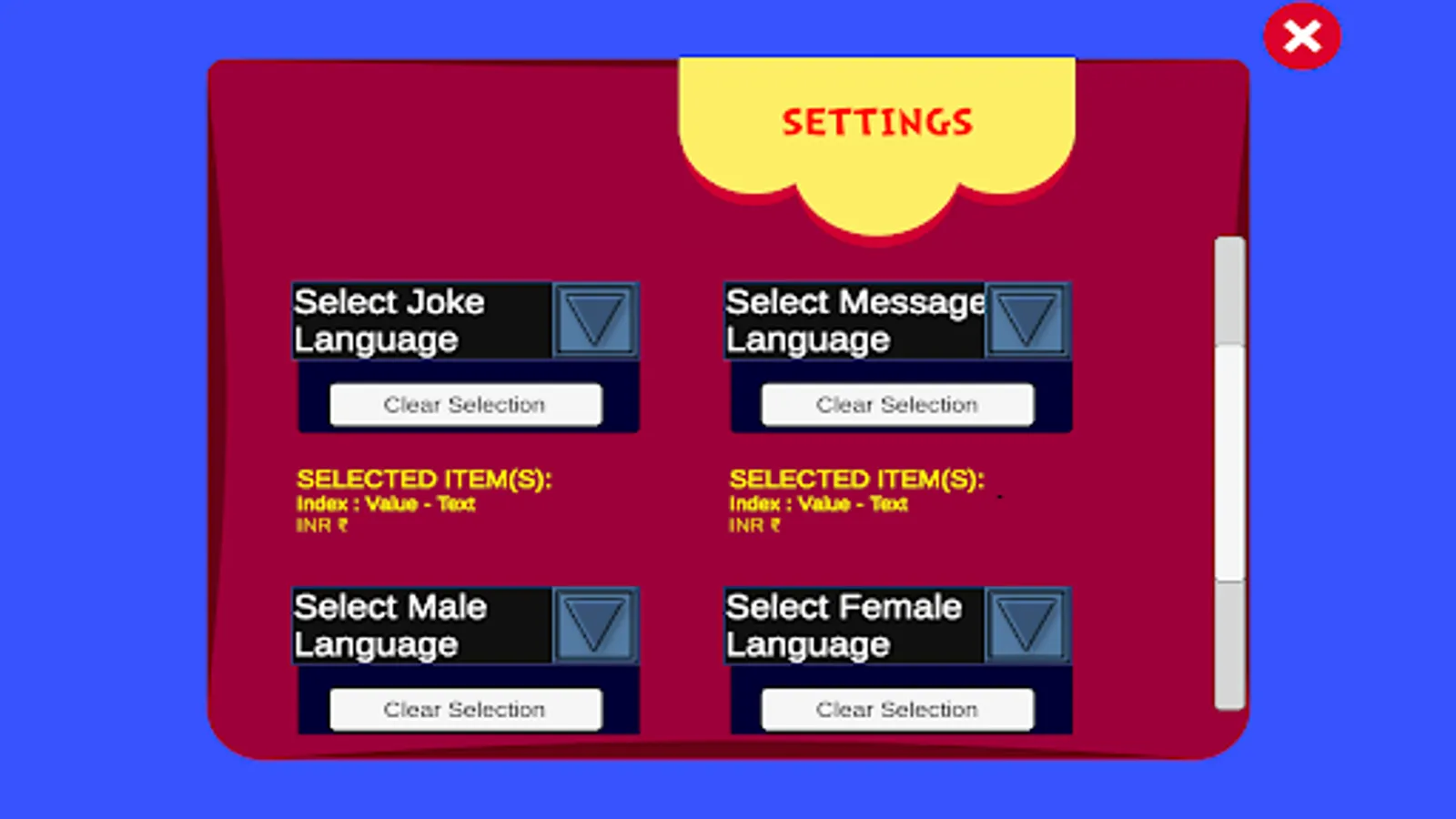 Male/Female Voice reload on Joke Language change on voice clear selection.