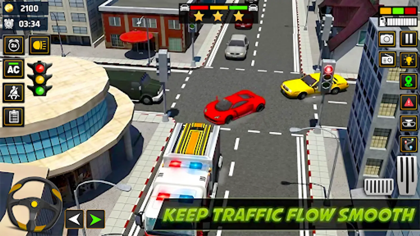 Crazy traffic simulator along with resilient rush hour is coming. This utmost madness game schlep highway traffic racers to escalate purview of flawless signal controller. Avail the chance to become a perfect traffic policeman in big city. In peep of day, big city roads are rushed by csr classics & auto vehicles. It's your time to smoothen traffic-flow by controlling signals and ultimately be a traffic conductor. The more sports cars and school buses you get through, the higher your score. Be careful as emergency vehicle could pop up from anywhere. Hang on to let rescue vehicles go without any single stop. Seems interesting? Yes, it is. Hooked up as a mad traffic controller of NY city and precisely control cars at signal stops. Be vigilant & careful as traffic rush comes from four sides and you have to stop road cars by one tap on signal bar. Remember to turn on green signal when emergency vehicles arrive in order to follow traffic law & avoid roadside accident. Direct vehicular and pedestrian traffic around busy town road to ensure road safety of emergency vehicles, derby racing autos & general public bus. Perform your traffic warden duty and don’t let rescue vehicles like ambulance, fire truck smash.