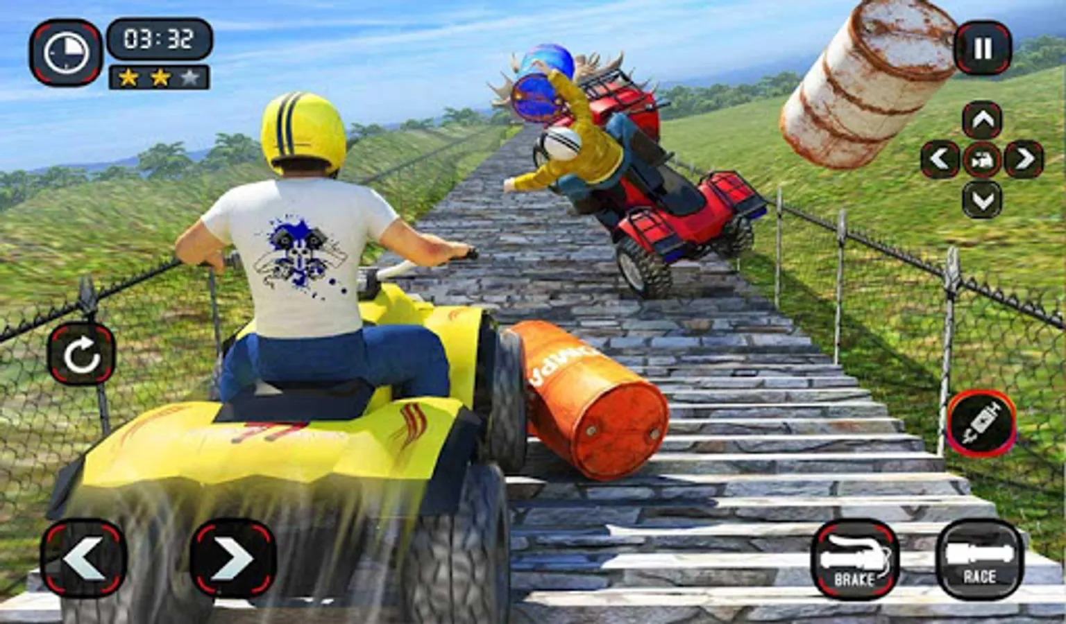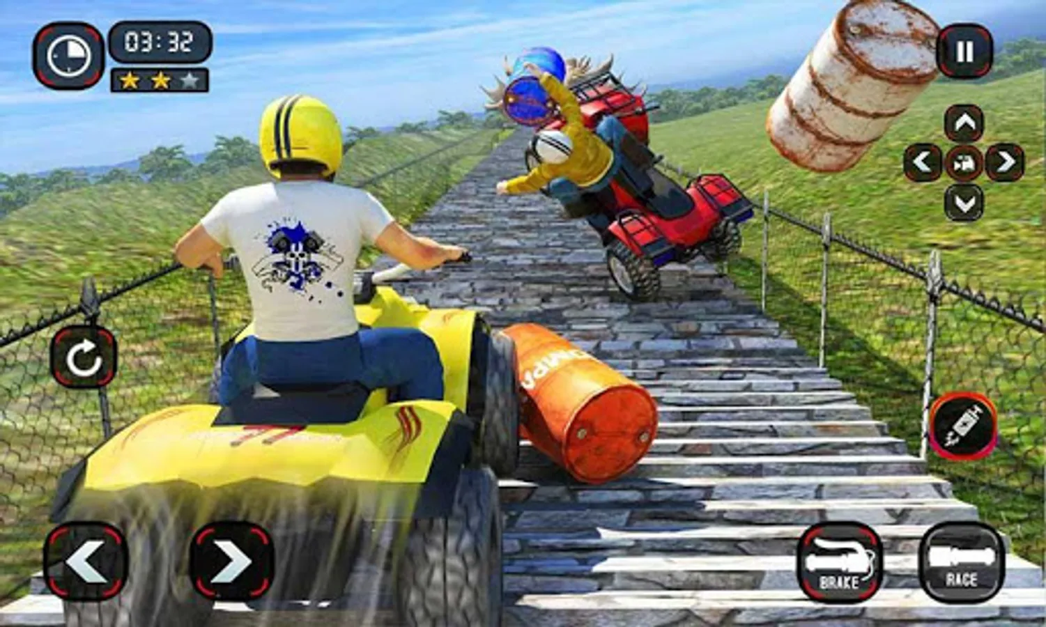 Immersive off-road atv quadbike driving controls on cross road tracks