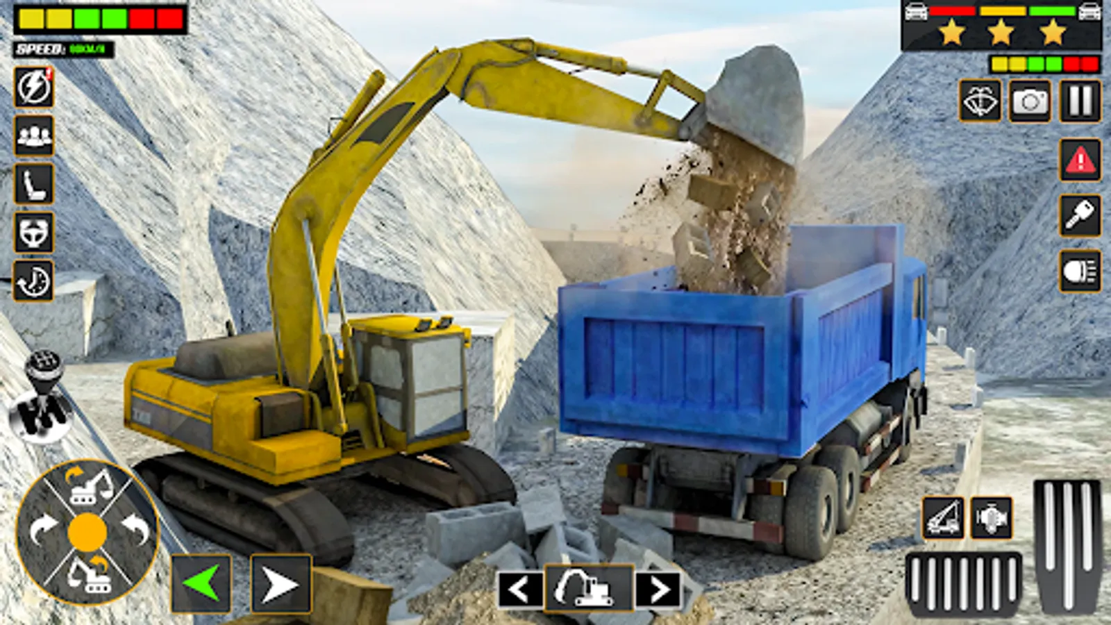 Play role of a real crane operator or a loader & dump truck driver. Enjoy the biggest trucking adventures in this up-hill construction simulator game. Do hard labour using monster construction cranes like stone cutter machine & road mining truck. As hill climb driver your job is to drive monster truck on offroad mountain roads. Due to landsliding, rocks fell down the steep hills and result in road blockage. Gear up and get inside construction excavator crane to pickup rocks & load big stones into dumper truck. Become a real truck driver to dump waste and debris outside massive 3D city. Show reckless driving skills to haul trash in dumpster. Operate heavy machinery to clear up hill roads timely and be an ultimate trucker. Work hard and get paycheck for your labour. Drive big rig wheeler truck on risky roads and operate multiple excavator cranes.