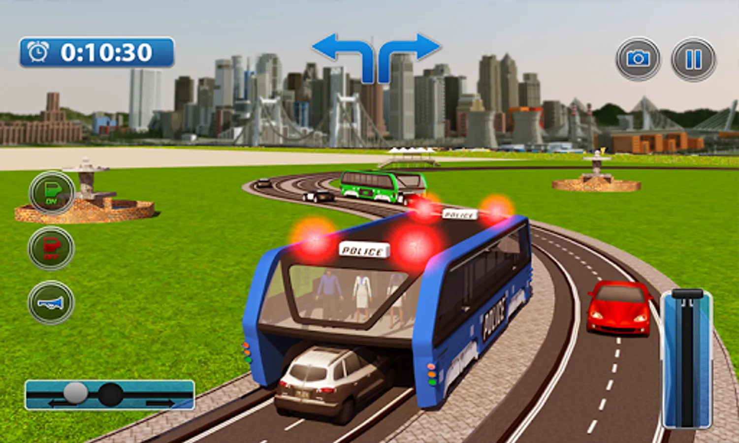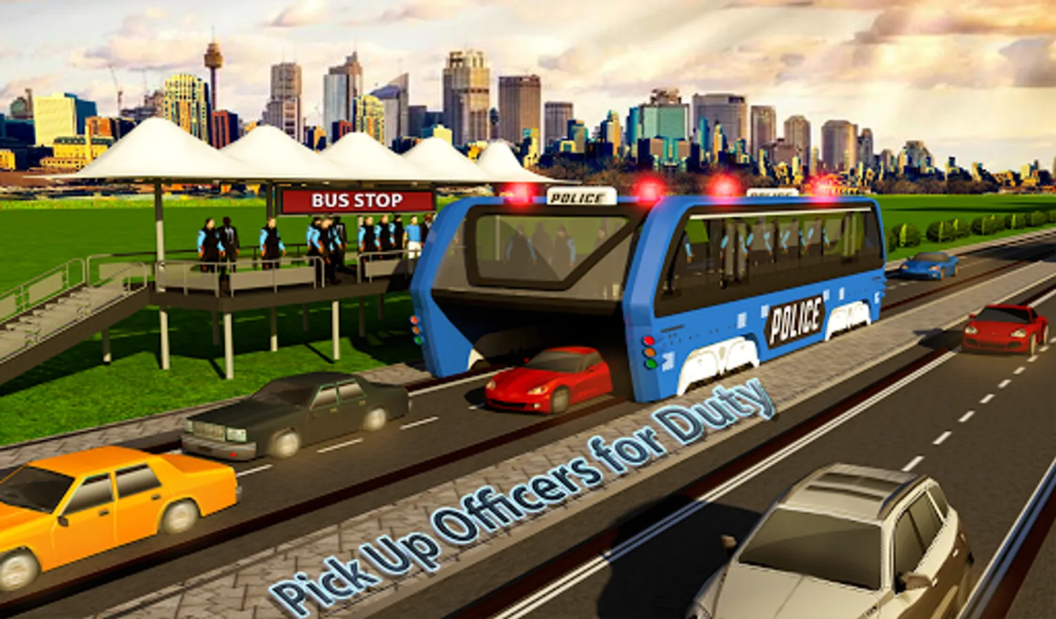 Hop into futuristic police bus simulator and transport criminals from city court to secure prison cell with inmates. Move with high security police protocol and drive the latest transit elevated bus above heavy traffic rush. Prisoner transport is risky job with police cars and gunman security officers. Play unique role of police bus driver and control giant straddle autobus to transfer criminal scum. Pick up police duty officers and FBI agents from bus stops and drop them at destinations across cities in huge open world. Public transport is not your concern but to ensure prisoner transportation safely. Use chinese invention to facilitate new york police department for law enforcement. Passengers are not ordinary citizens but special operative agents. Trnsport officials to midtown stops for secret recon missions.