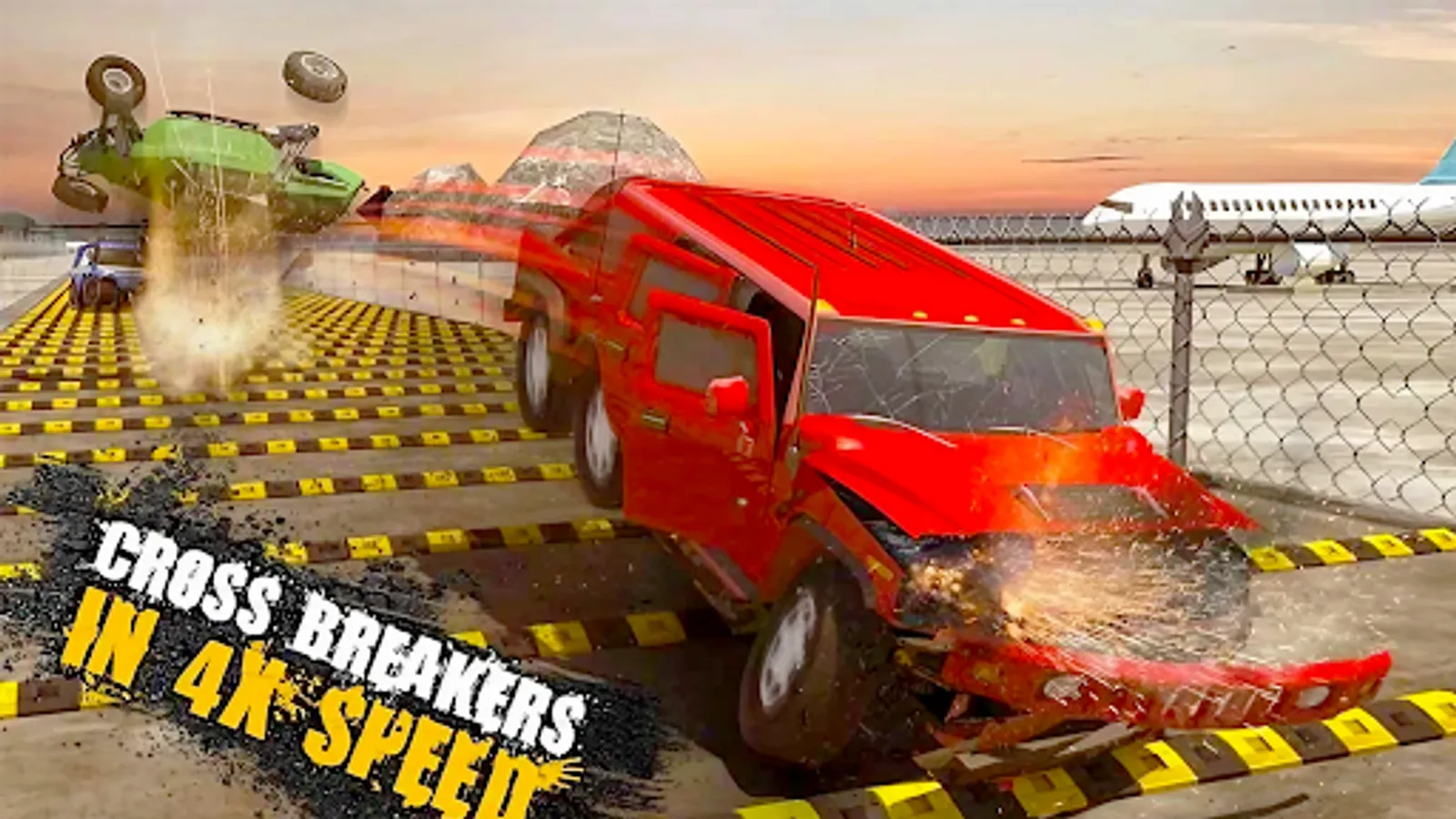 What would happen if you drove over 100 speed bumps high speed testing of 100 miles per hour? To find out play 100 Speed Bump Car Crash Test for high speed testing. Drive wide variety of muscle cars to take on speed breaker challenge in extreme car crash simulator.Take a run down this desert highway road of torture with deadly speed breaker car driving as an offroad outlaws member. Drive multiple vehicles like 4x4 jeep, offroad suv’s, pro atv, muscle cars or 6x6 russian truck on desert highway roads and cross deadly 100+ speed bumps. Speed breaker car crash games are designed to make muscle car drivers slow down while driving on speed bump high speed testing. It's natural to assume that hitting a speed bump would deliver a bounce when you will drive vintage car destruction at full speed test.