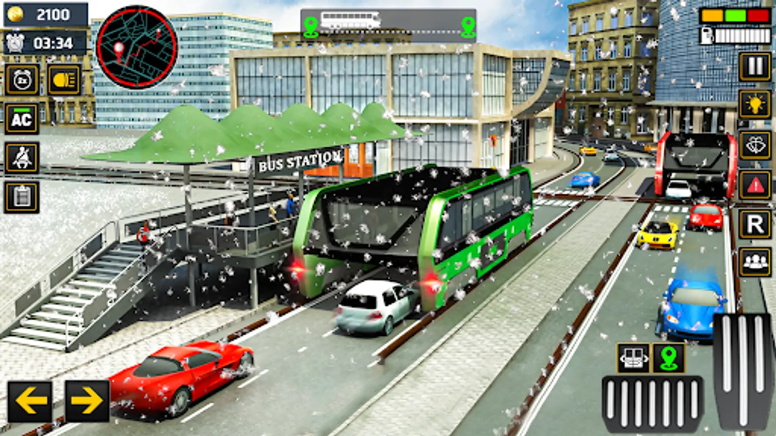 Now enjoy driving futuristic vehicle in various weather conditions like snowy blizzard and heavy rainfall. A brand new massive city environment with 15 new bus stations.