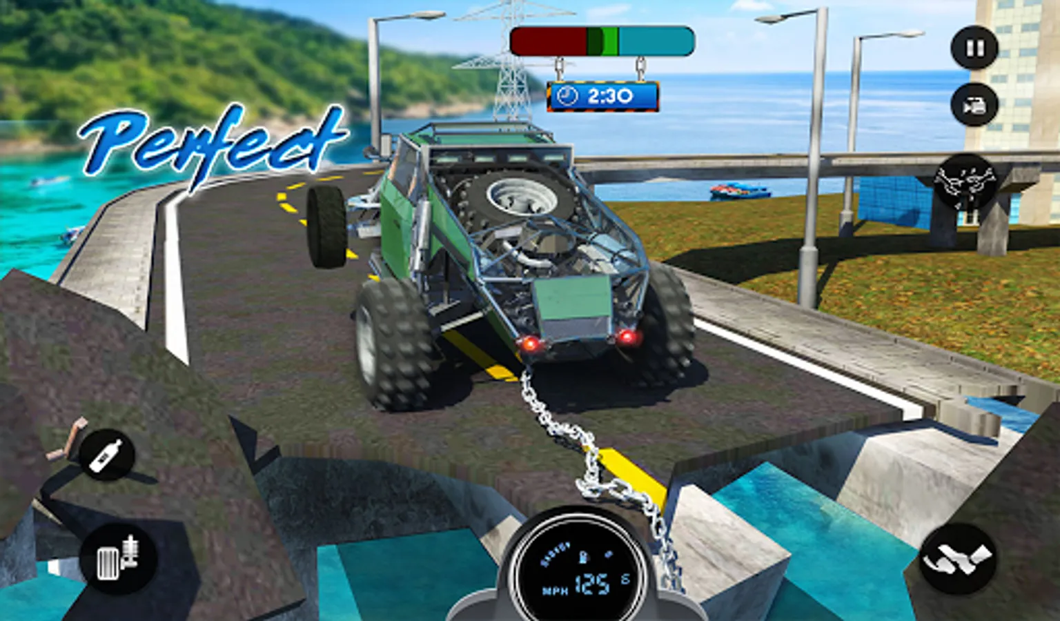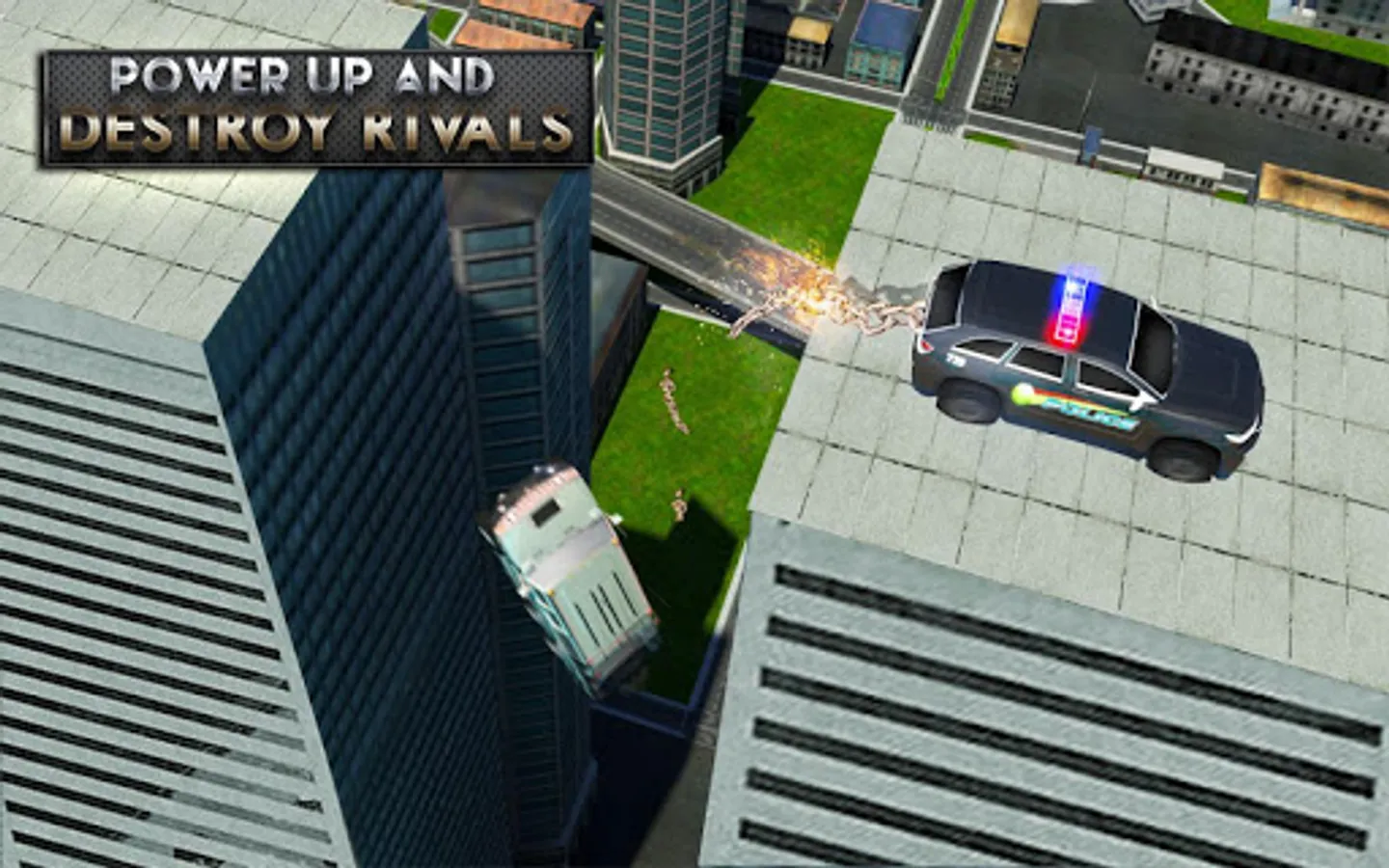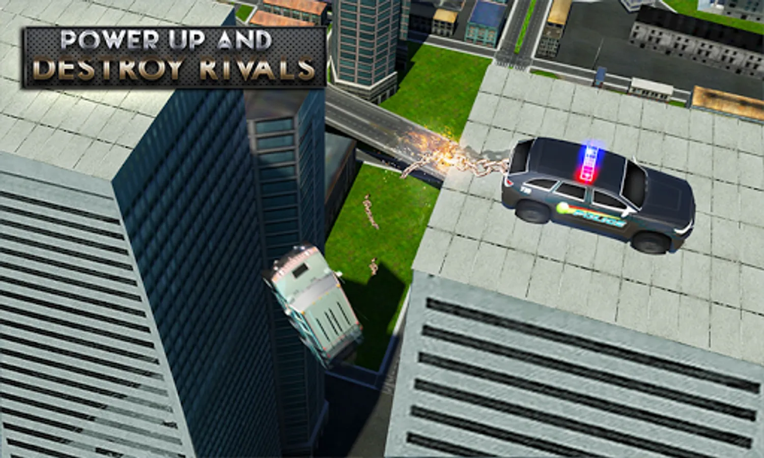 Fasten your seat belt and sit tight, drive muscle car furiously to leave your mad rival hanging from cliff & break the chain. Clash of speed car war in death race on top of skyscrapers 1000 ft above the metro city. Spin tires and burn the rubber of drift car to overcome opponent mud runner in tug of war demolition derby pull match.