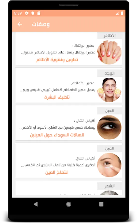The first Arabic application that includes a huge encyclopedia of beauty and health recipes for all parts of the body