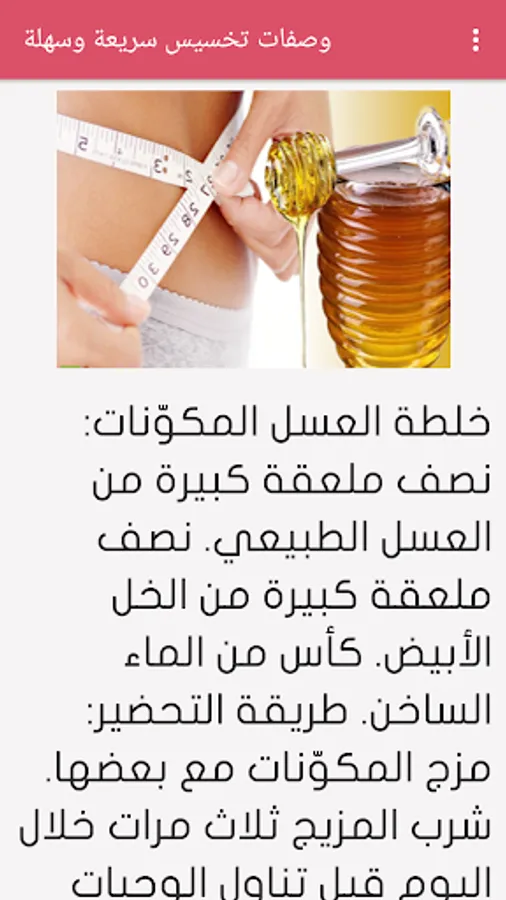 Reaching a graceful body free of flabs and accumulated fat is a concern for many men and women, as they try to reach this body through dangerous and expensive surgeries, as well as by taking chemical drugs that may give a result in the near term, but they may cause harm to the body In the long run, here all you need to do is follow a healthy diet and apply some natural slimming recipes that give good and fast results.