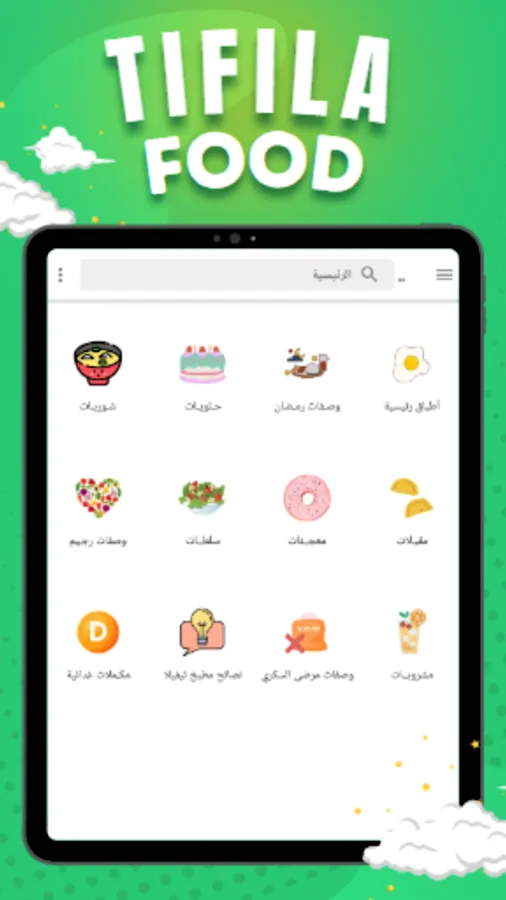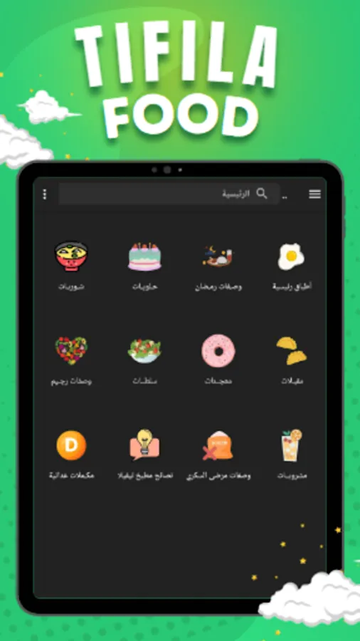 8: The application has many categories of foods (main dishes - sweets - appetizers - pastries - soups - salads - juices and drinks - diabetic foods - diet recipes - tips and information - Ramadan recipes, whether it is Ramadan suhoor or Ramadan breakfast).