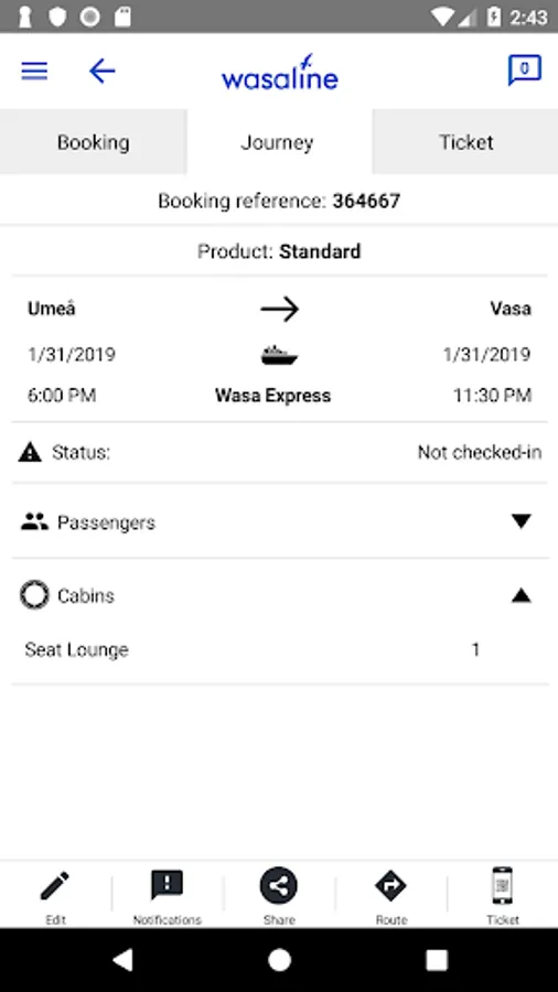 The Wasaline app makes travelling easy and smooth. All information you need for your journey is just at the tip of your fingers. It’s easy! Book new trips, manage your bookings, check-in and board smoothly without going by the check-in counter.