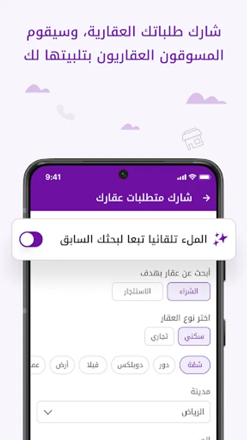 Tashbeek: Your time is short and you are looking for a property with specific specifications? With ease, enter “Tashbeek” and add the specifications of the property you want, such as the type, whether it is a villa, apartment, or other, city, neighborhood, budget, and any other requirements, and your request will be sent to the best real estate brokers to help you find your future property in a short time.