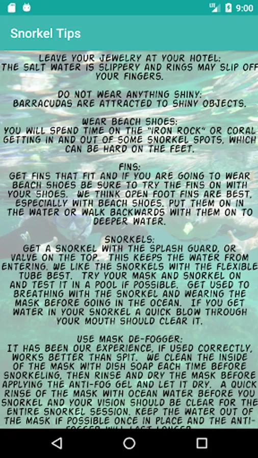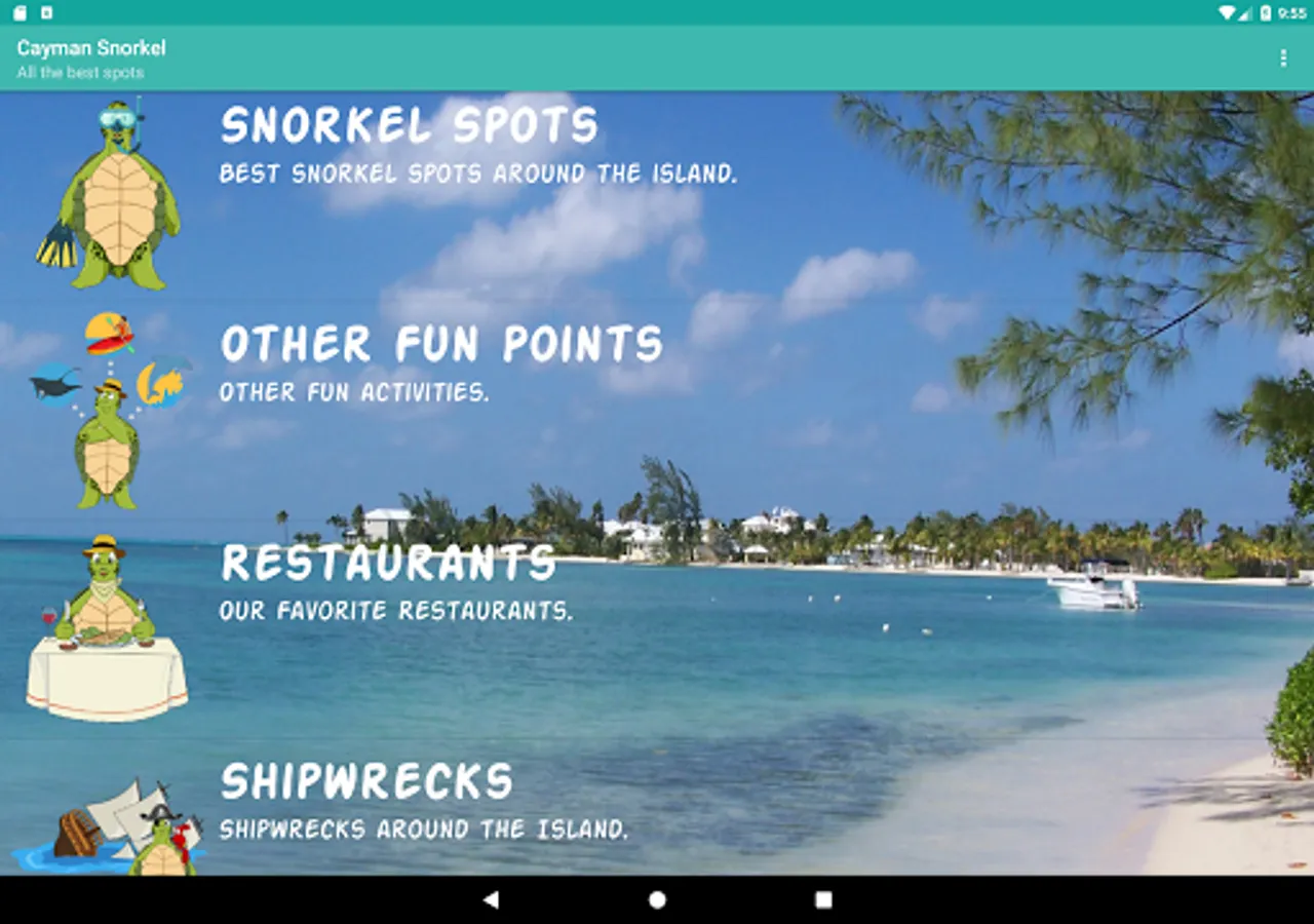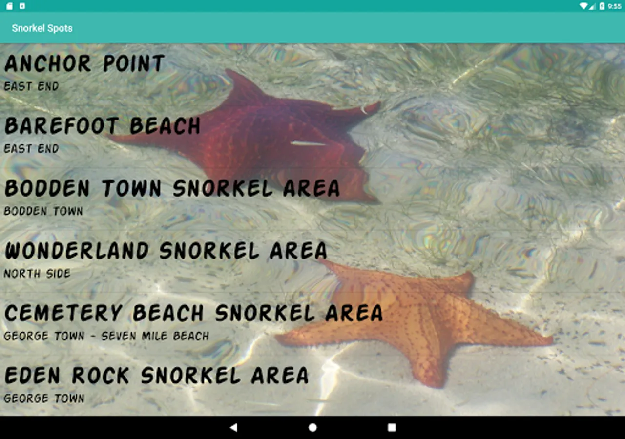 The App does not require any cellular data! Decide on a snorkel adventure location from the list and the App’s map will show you where they are and how to get there by simply turning on your GPS. Have fun exploring the marine life and aquatic landscape.